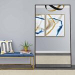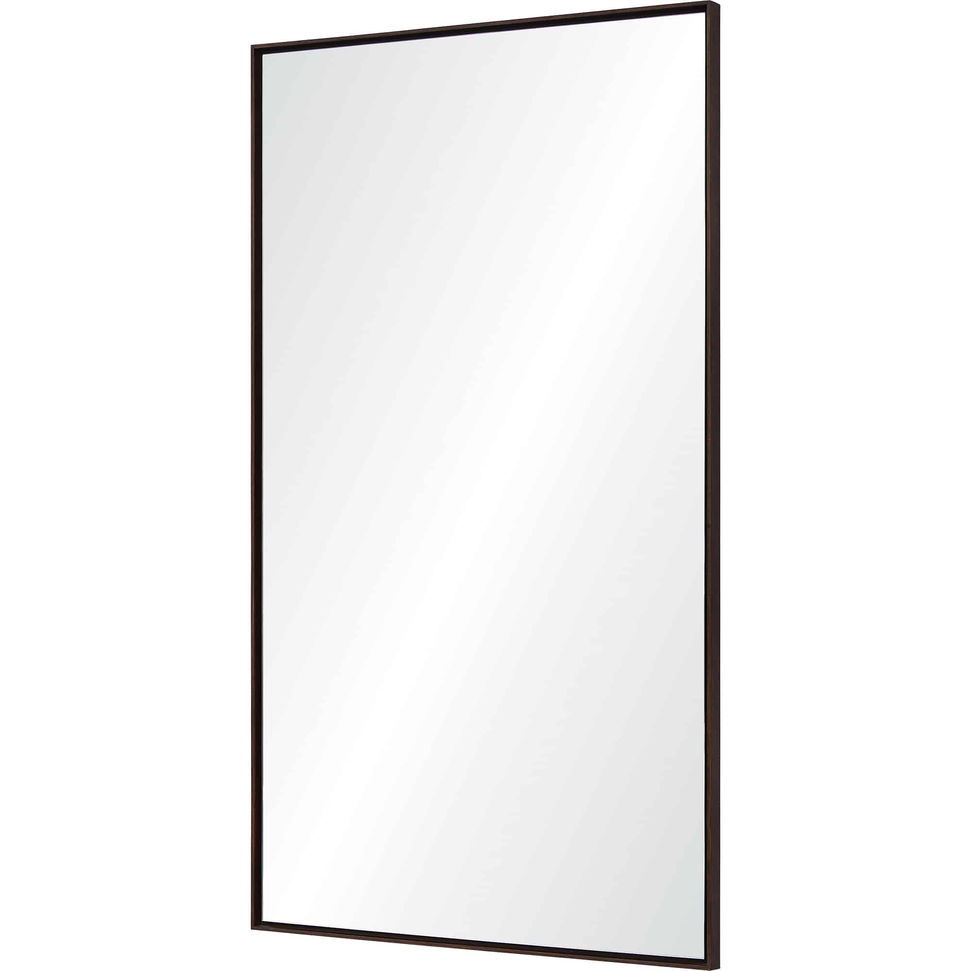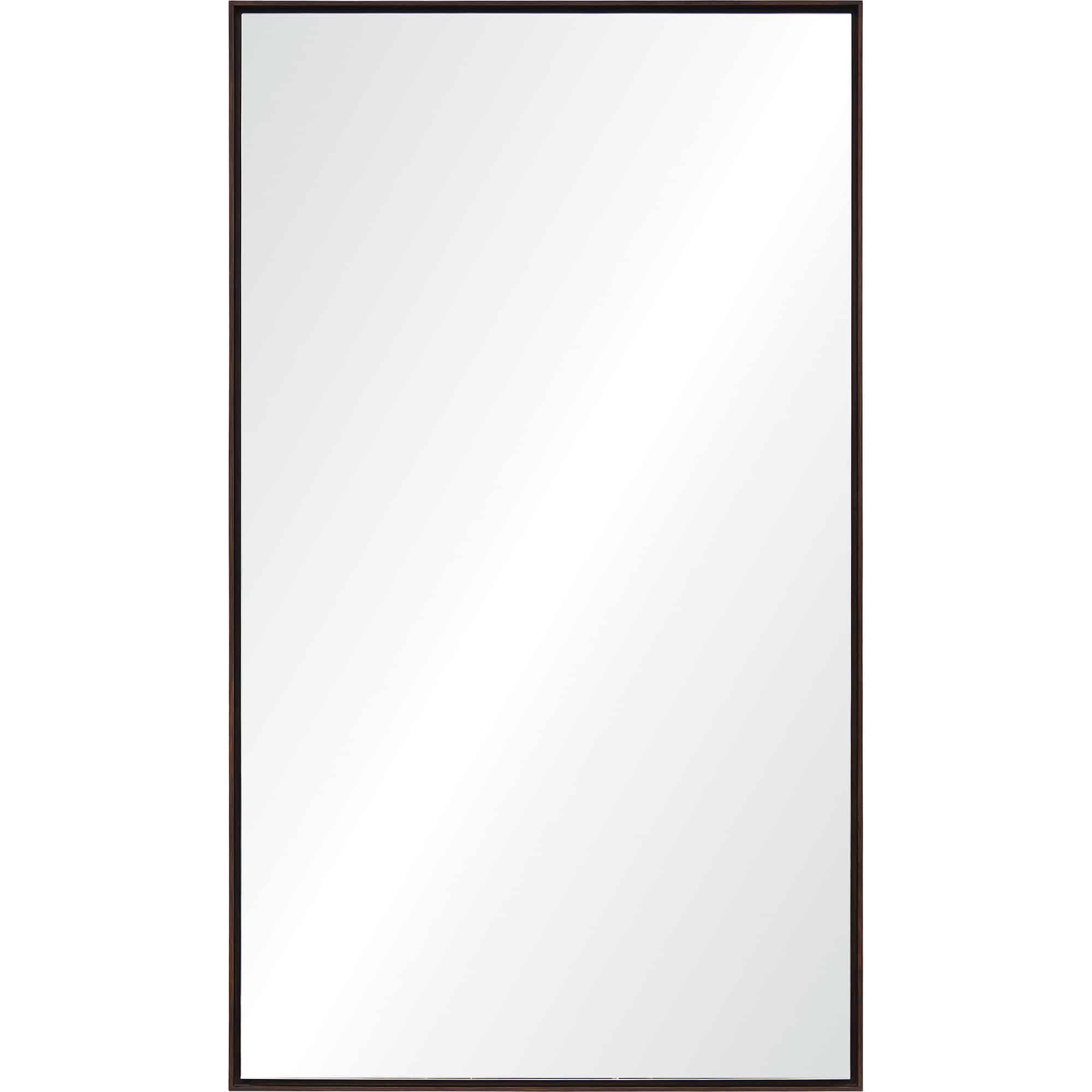 This full-length mirror brings a raw, refined approach to traditional décor. The rectangular looking glass appears to be floating at the center of the brown wood frame, inset to create a shadowbox effect. Suitable as a wall-mounted or leaner style mirror, a dark chestnut finish highlights the natural wood grain of the large-format mirror frame.
