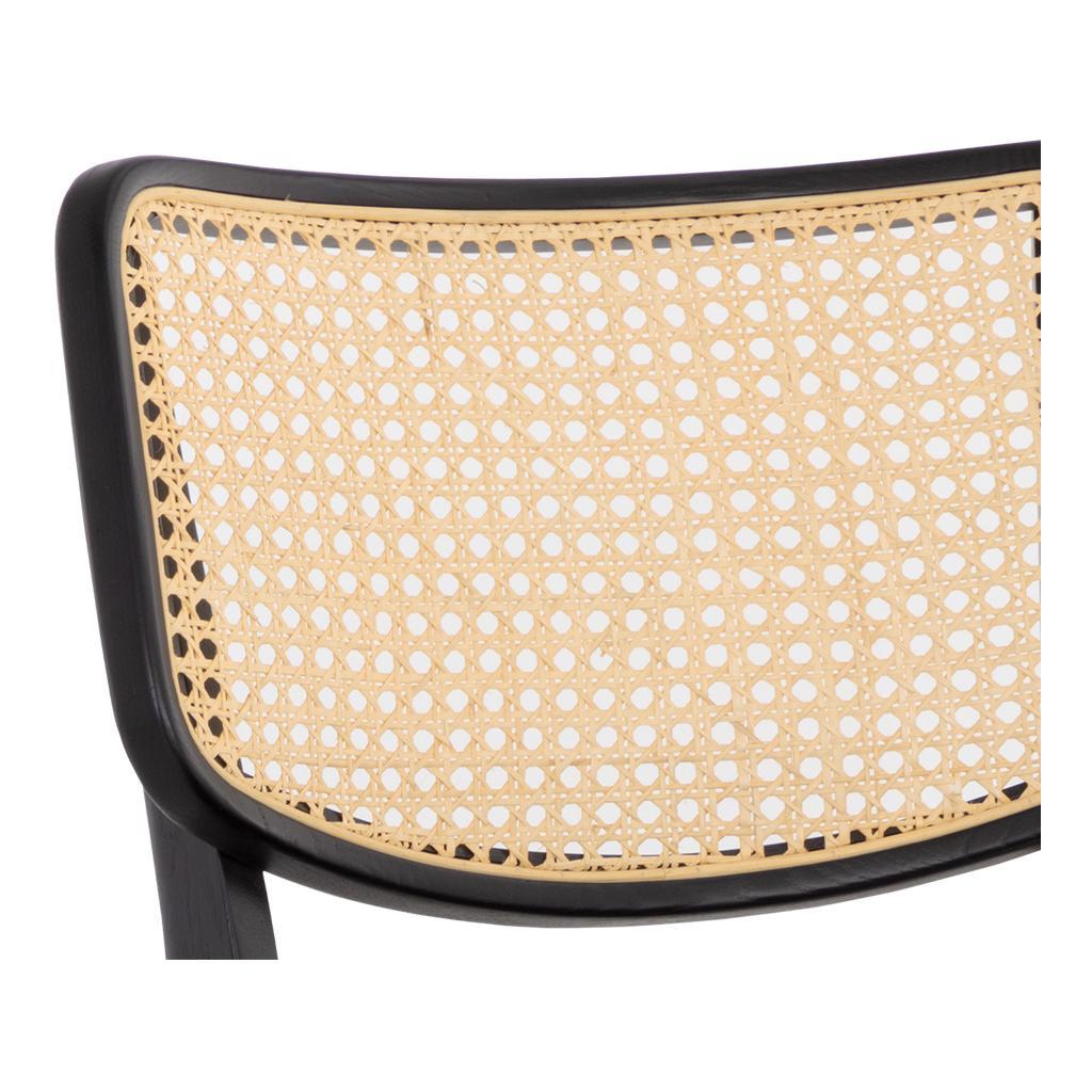 This stylish counter stool will bring life to any dining and kitchen space. Features a beautiful black seat with a natural rattan seatback. A solid black oak wood frame complete this naturally edgy design. Handle With Care: This design has been crafted with rattan. This artisan-crafted material features intricate weaving that results in natural variations where no two pieces are alike. Colour and texture differences are to be expected and embraced with this natural material. Due to the weaving process used, the fibres in this material may display shorter or longer lengths where the weaving ends. Visit our Product Care page for more information on how to ensure the lasting beauty of this piece.