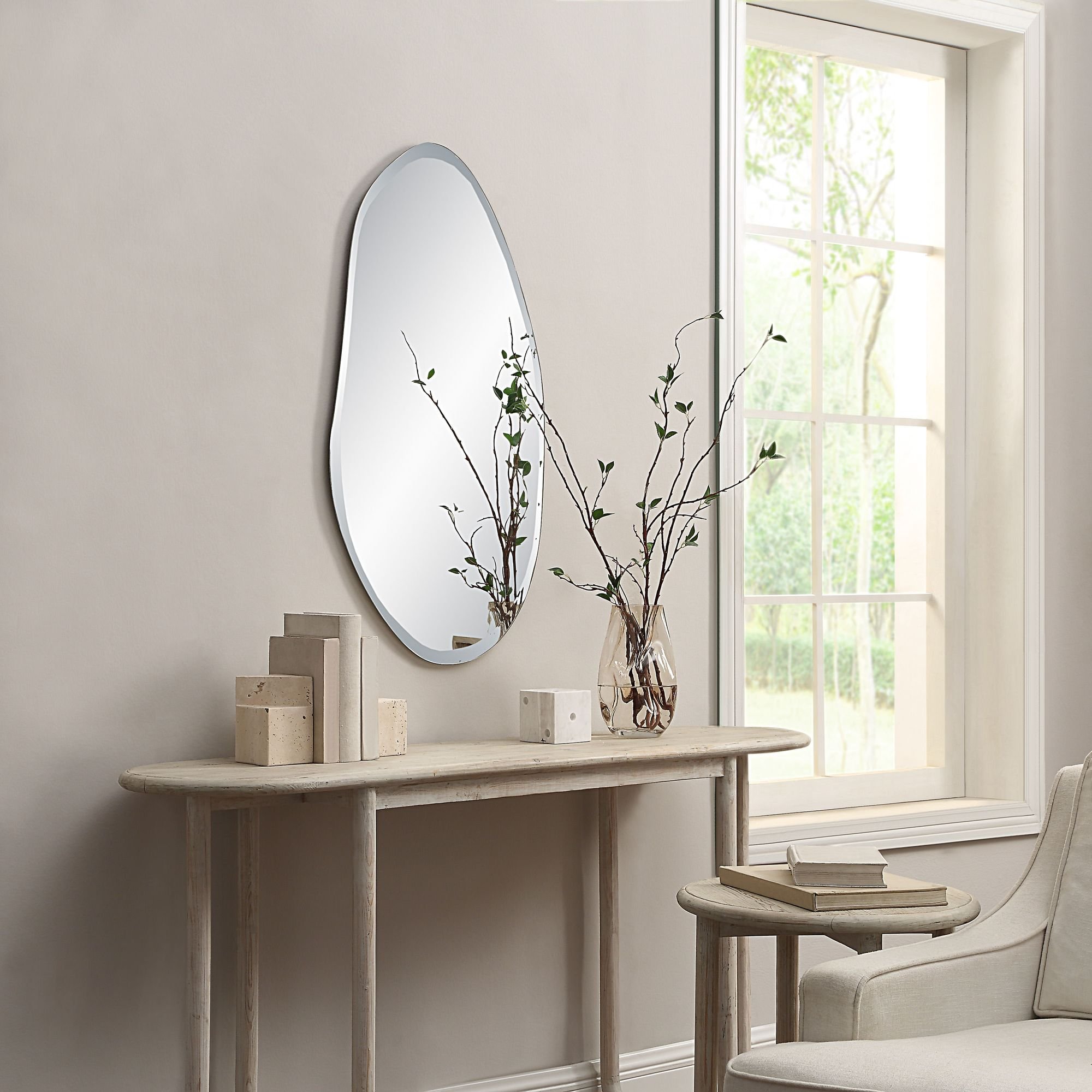 This mirror’s frameless design offers boundless modern style while its 4-way hanging delivers display flexibility letting you hang it in any orientation to suit the setting. Beveled, crystal-clear, distortion-free mirror glass provides a high-end look you can only get from quality materials and expert craftsmanship.