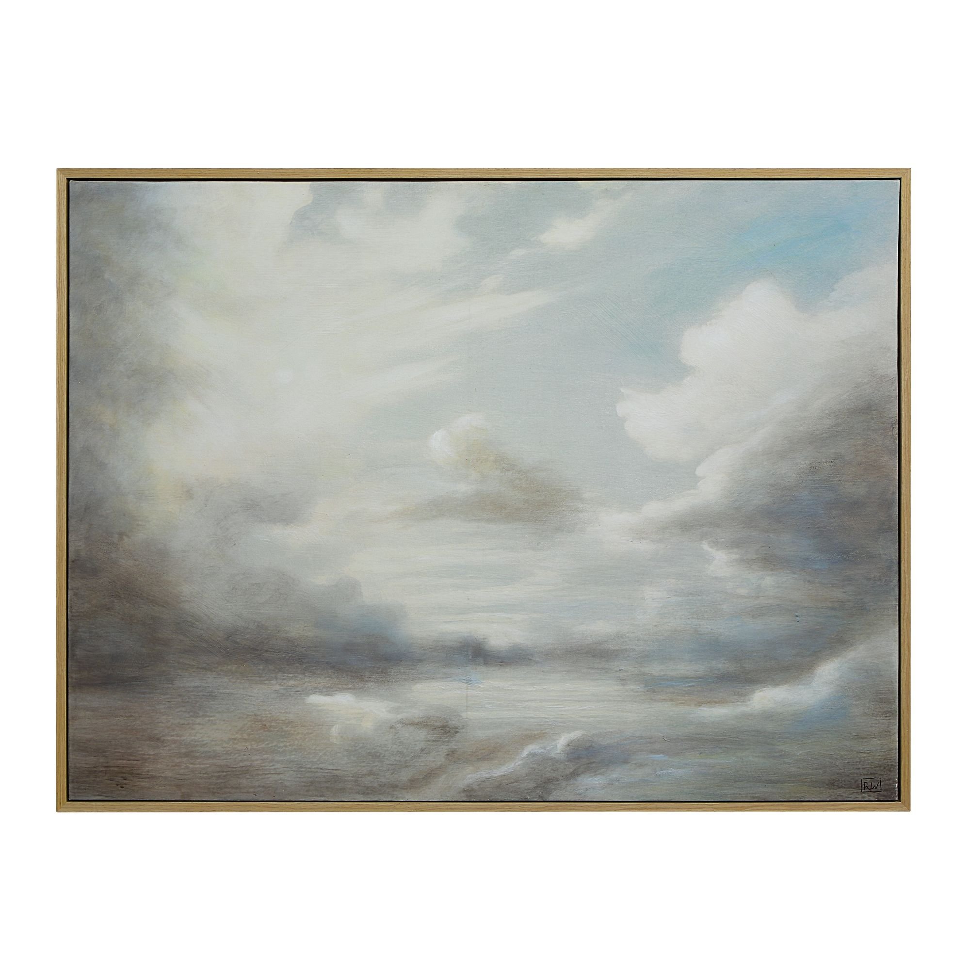 Put your design savvy on display with this stunning canvas art. Hand painted with plenty of texture, this wall art’s dreamy cloud-and-light-filled blue sky will bring interest and style to any transitional home or office. A stunning cream-painted frame puts a finishing touch on this eye-catching piece that’s ready to complete the look of any space.