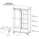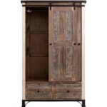 - Features large mirror on door, open to reveal hanging rod.