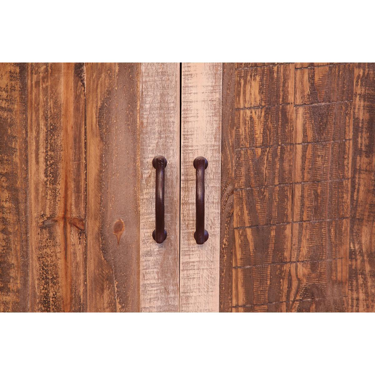- Tops trim feature hand-forged iron with nail-head detailing.