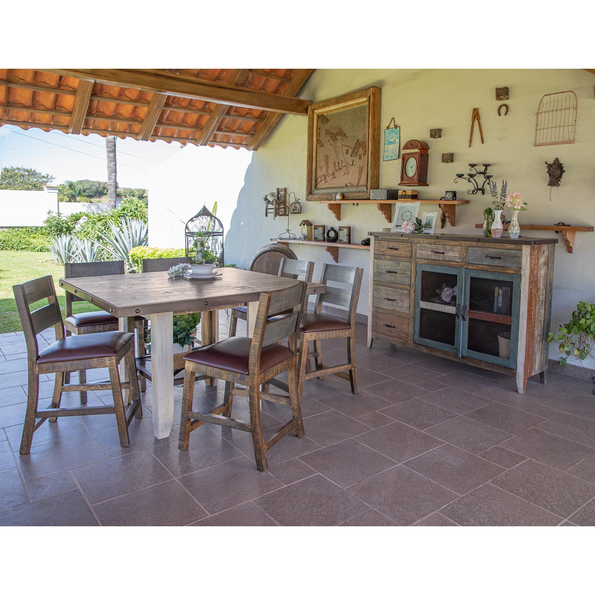 Crafted from solid pine wood, the Antique Multicolor seating collection is the perfect choice to infuse any space with rustic charm. This collection boasts faux leather upholstery seats that deliver both comfort and exquisite aesthetics.