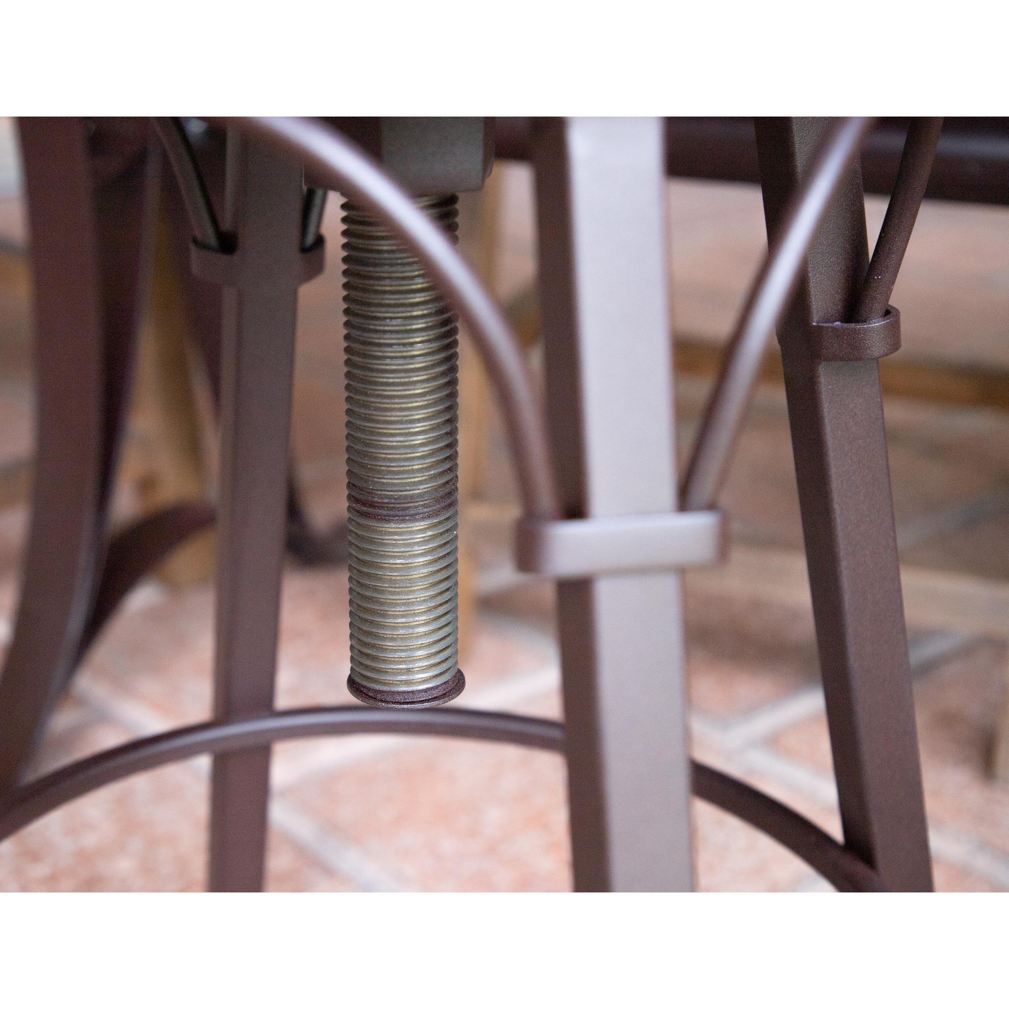 Bring rustic charm to your home with the Antique Multicolor adjustable swivel barstool. This barstool features a multi-color wood grain seat and an industrial hand-wrought iron base. Its backless design allows it to easily tuck under tables and countertops, saving space.