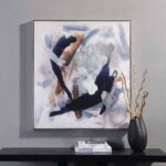 A dance of brush strokes, this art painting presents a poetic quality to any room it enters. Showcasing a blend of bold, dark tones and pale pastels, this framed canvas gives clients the chance to create a moody, contemporary or classic interior. Set within the bedroom, this piece of art enhances the dreamy energy of the room, yet within the living room, it adds personality to the everyday essentials in its midst.