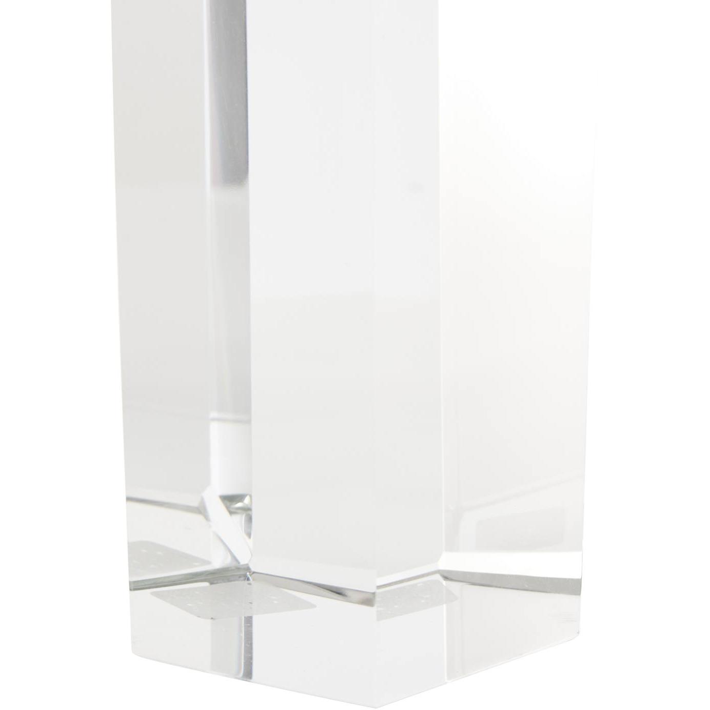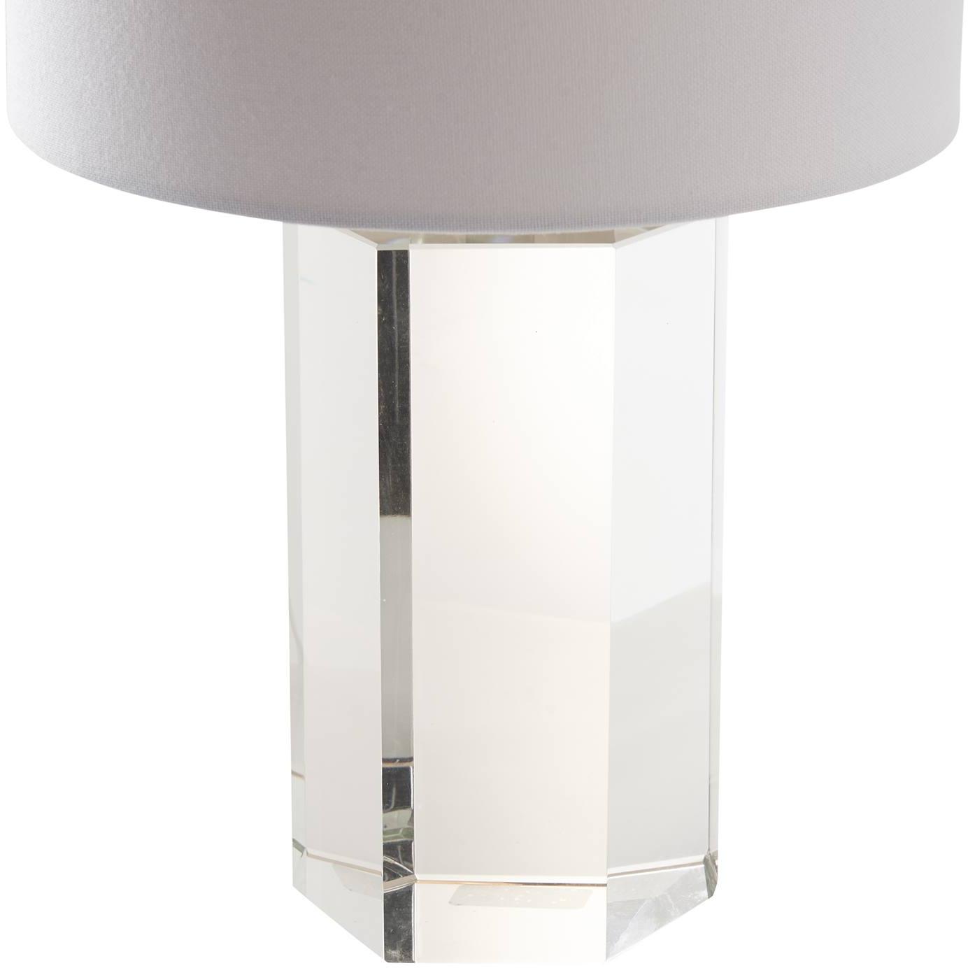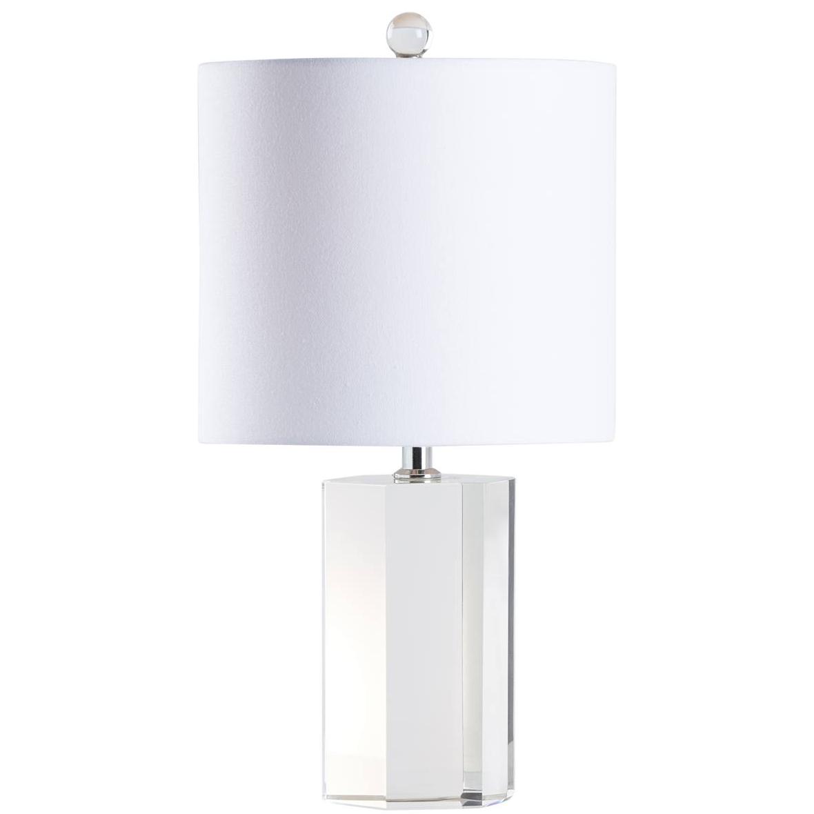 Small in size, big on style. This petite crystal lamp features a sleek square base, brushed nickel neck, and matching crystal finial—bringing a touch of modern elegance.