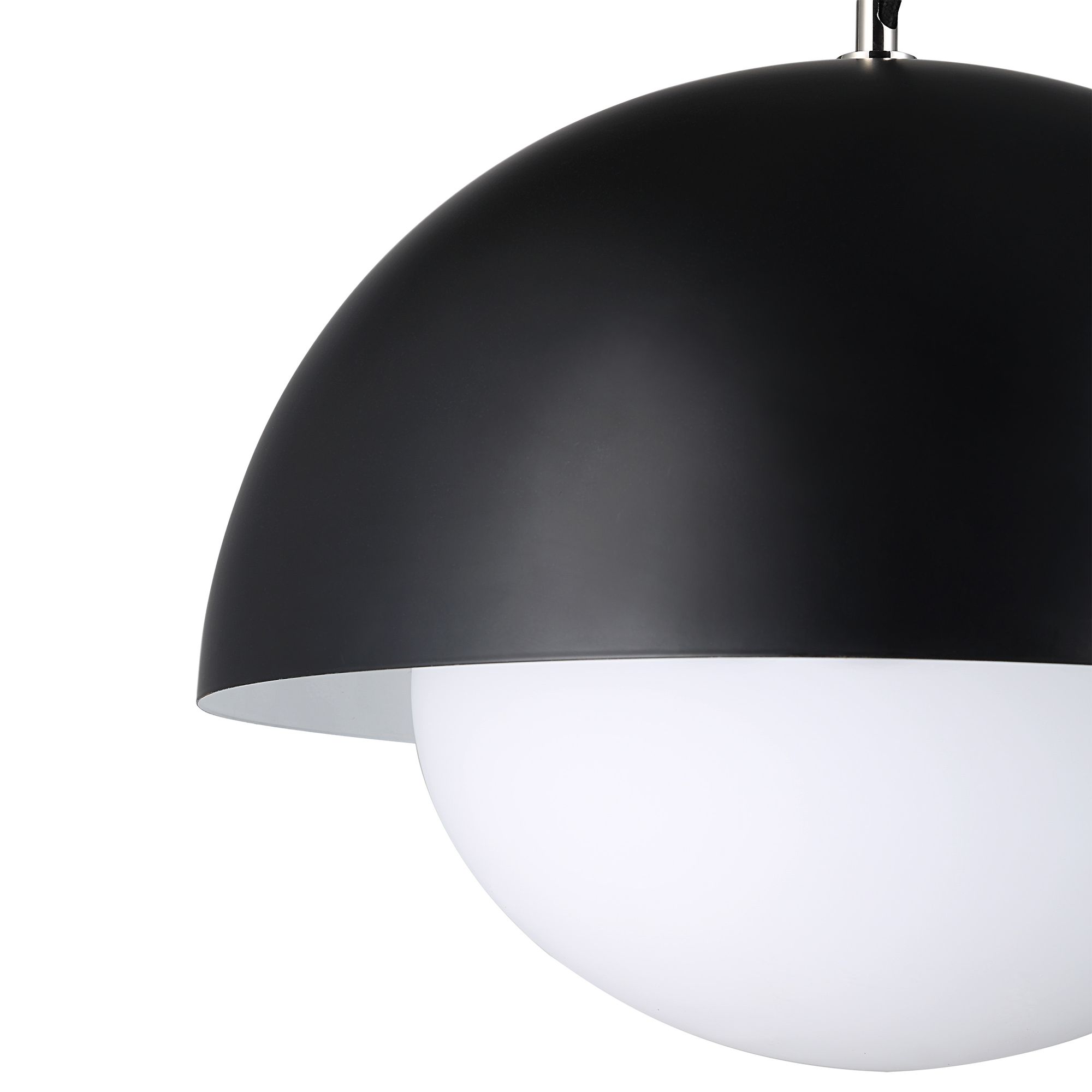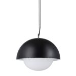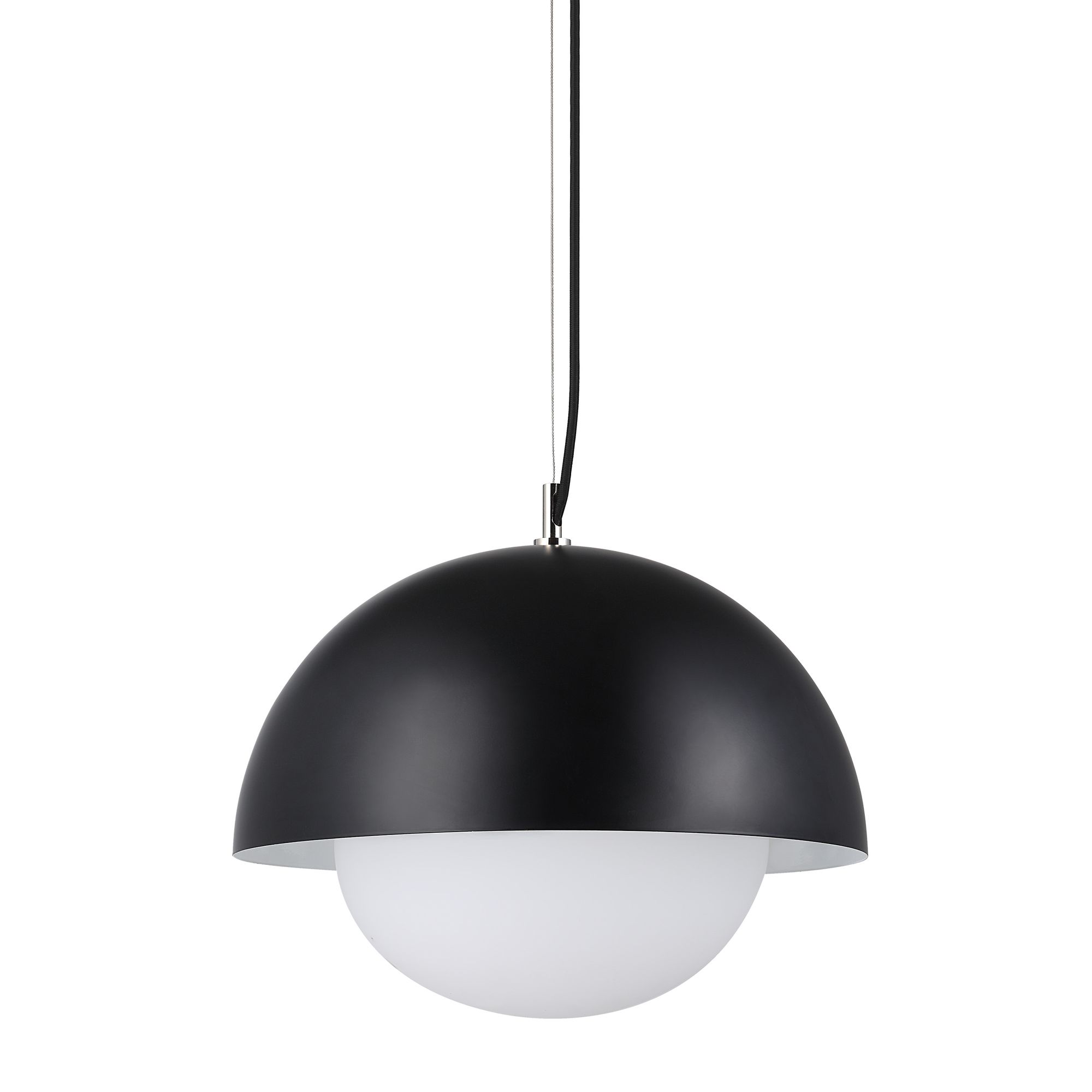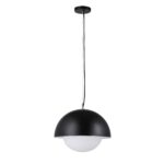With a sleek, and minimalist silhouette, the Antonio ceiling light fixture offers an on-trend look that blends seamlessly in mid-century and ultra-modern settings. Clean lines and timeless finishes come to life through a sculptural dome-shaped shade in matte black powder coated iron that holds a white etched glass globe. An eye-catching element even when turned off, once illuminated, this pendant fixture becomes even more beautiful, diffusing warm, ambient light anywhere it hangs. Including an LED bulb and hardwiring with a black cloth-covered cable, this hanging ceiling light fixture is ready to be installed over a dining table, kitchen island, or any spot that’s craving a shot of modern style.