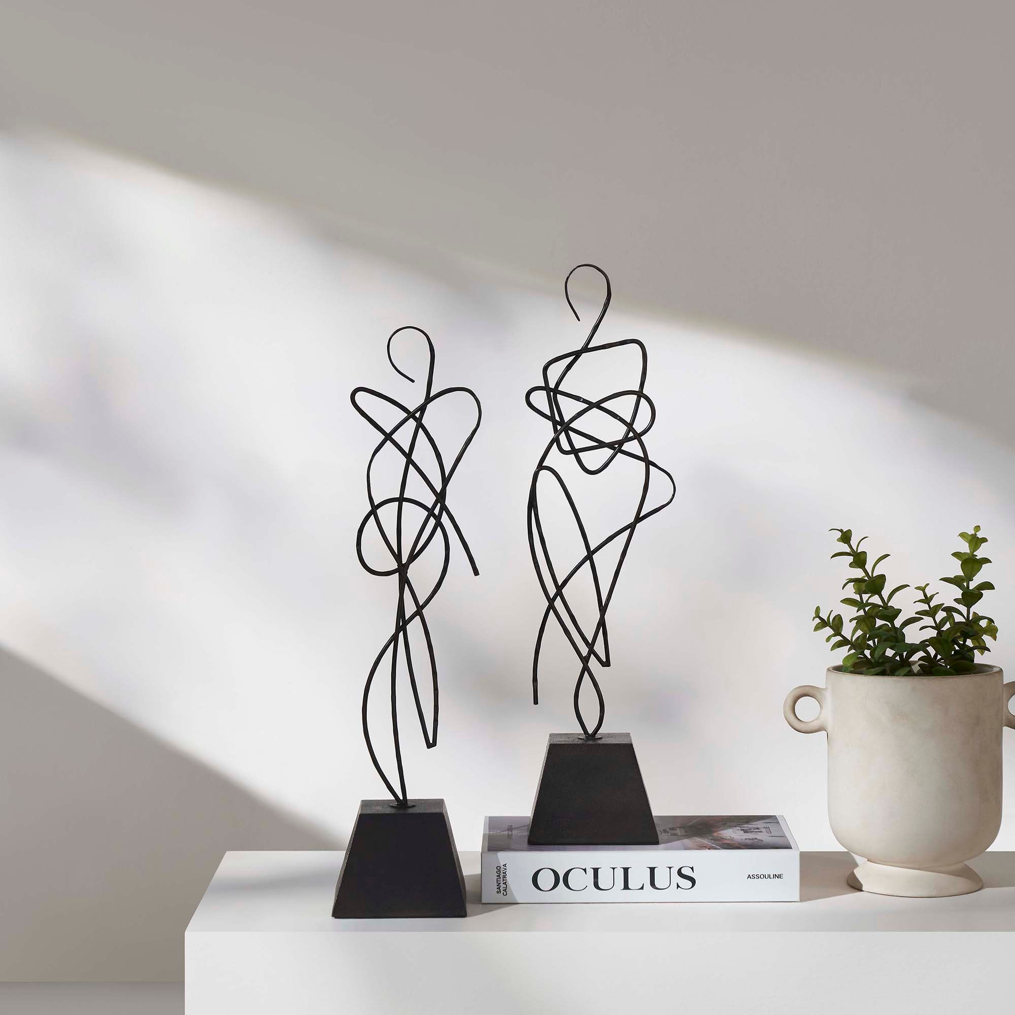 A melody is captured within this set of decor accessories’ artful structures. With bold bases and cast aluminum constructions, these pieces hold strength and delicacy in equal measure. Placed in a contemporary or classic interior, these decorative statues envelop the space with a creative energy, while integrating effortlessly into their surroundings.