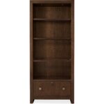 Finish: The high clarity Classic Walnut finish over figured quartered walnut veneers adds richness and depth. Custom knob hardware in Satin Brass finish.