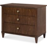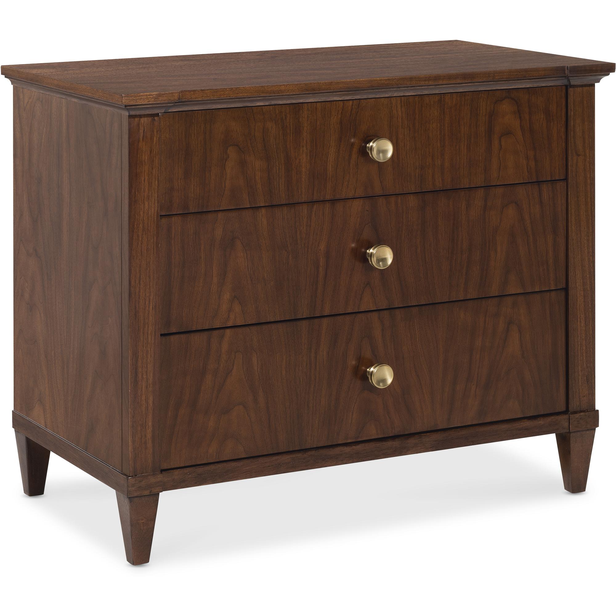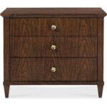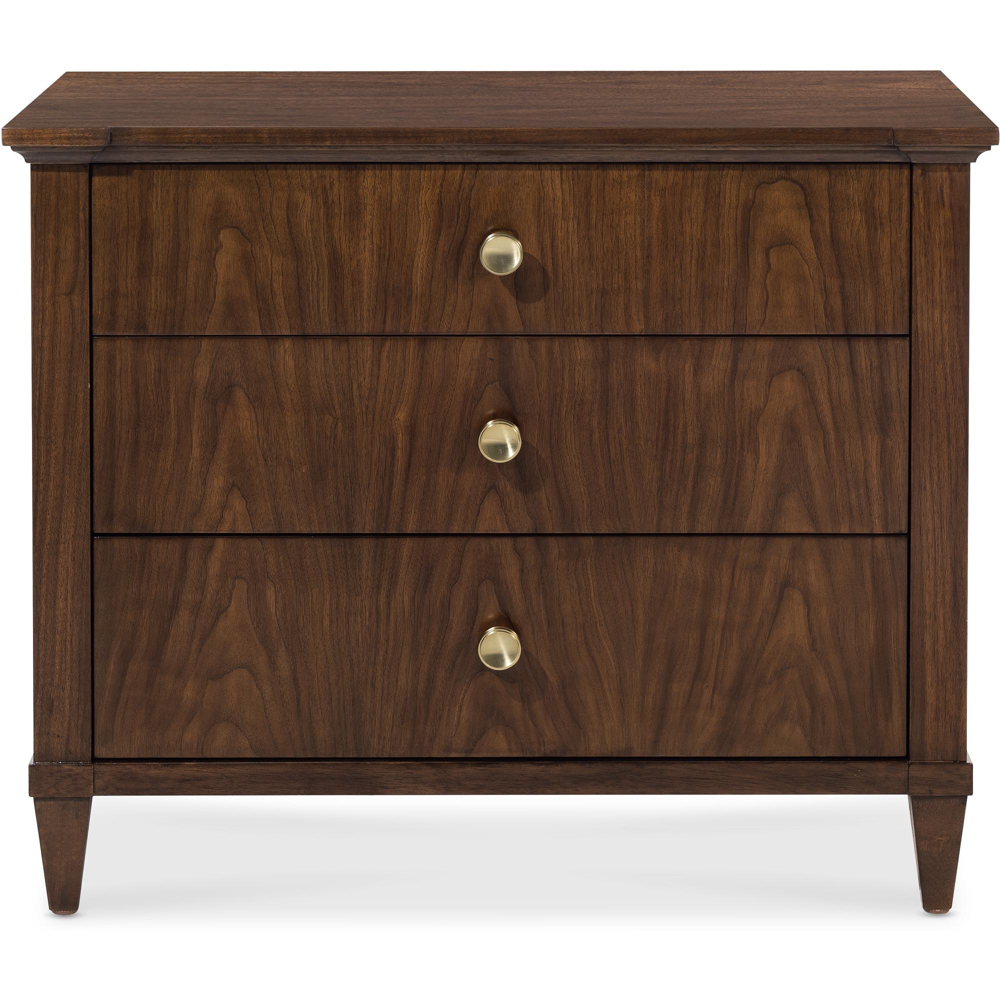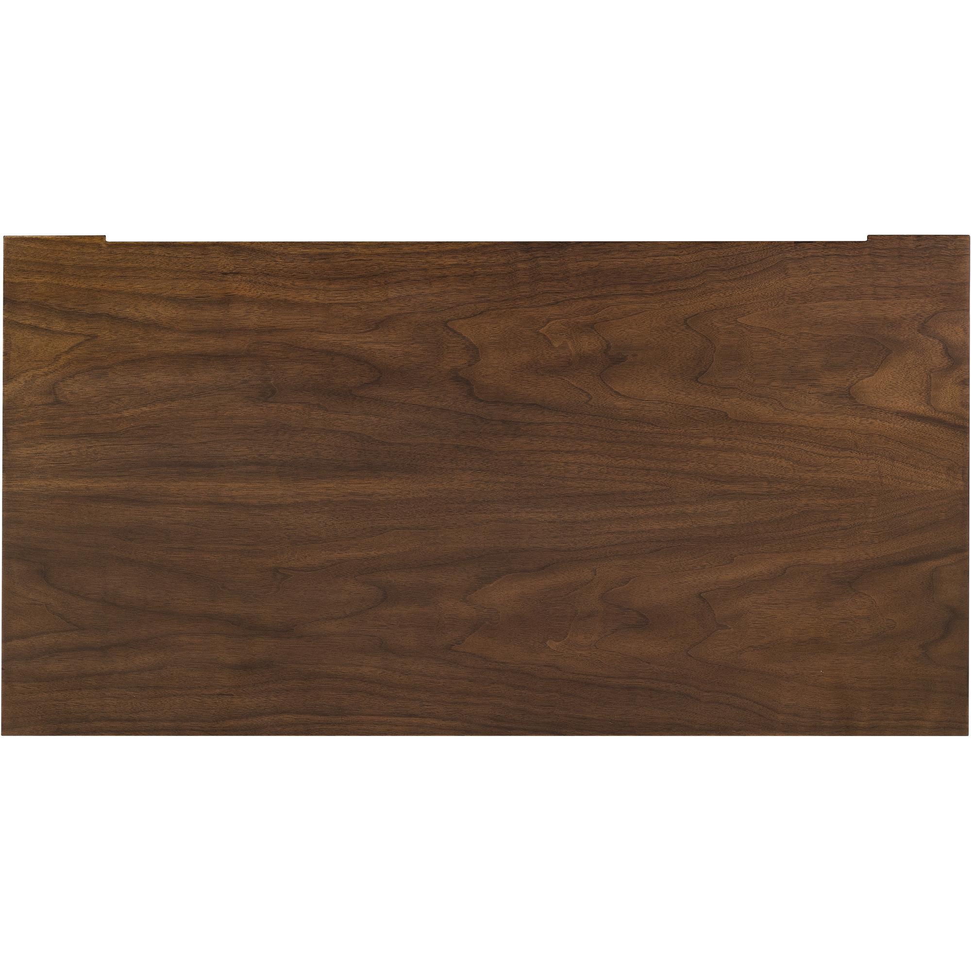 Finish: The high clarity Classic Walnut finish over figured quartered walnut veneers adds richness and depth. Custom knob hardware in Satin Brass finish.