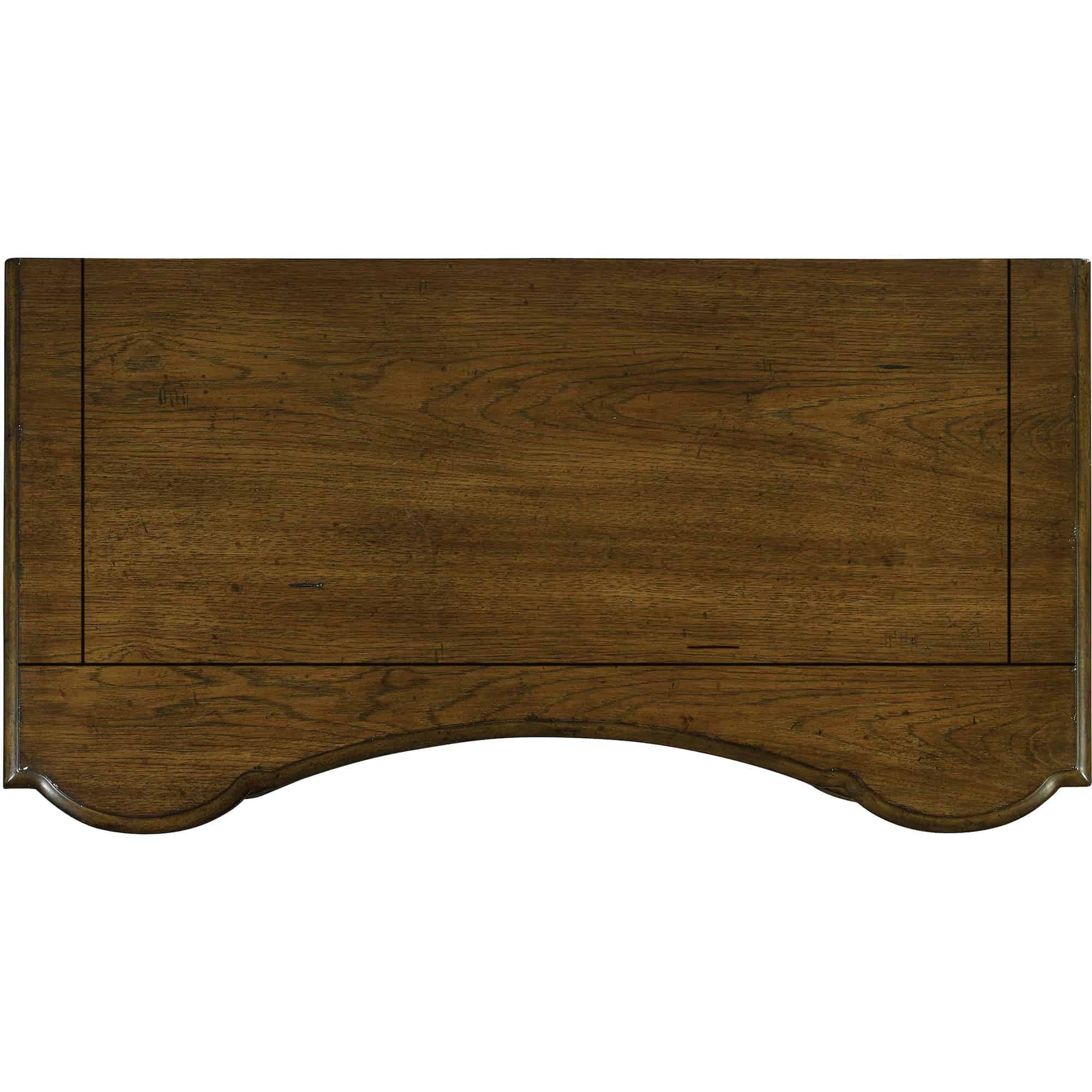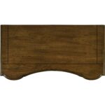 Finish: A soft casual finish over Pecky Pecan gives a rustic, character-filled and authentic look. The finish is complemented by antique-inspired hardware including kick plates, tear-drop-shaped pendants and ring pulls with back-plates in a time-worn bronze finish. Distressing includes rasping, chiseling, chain and cow-tailing.
