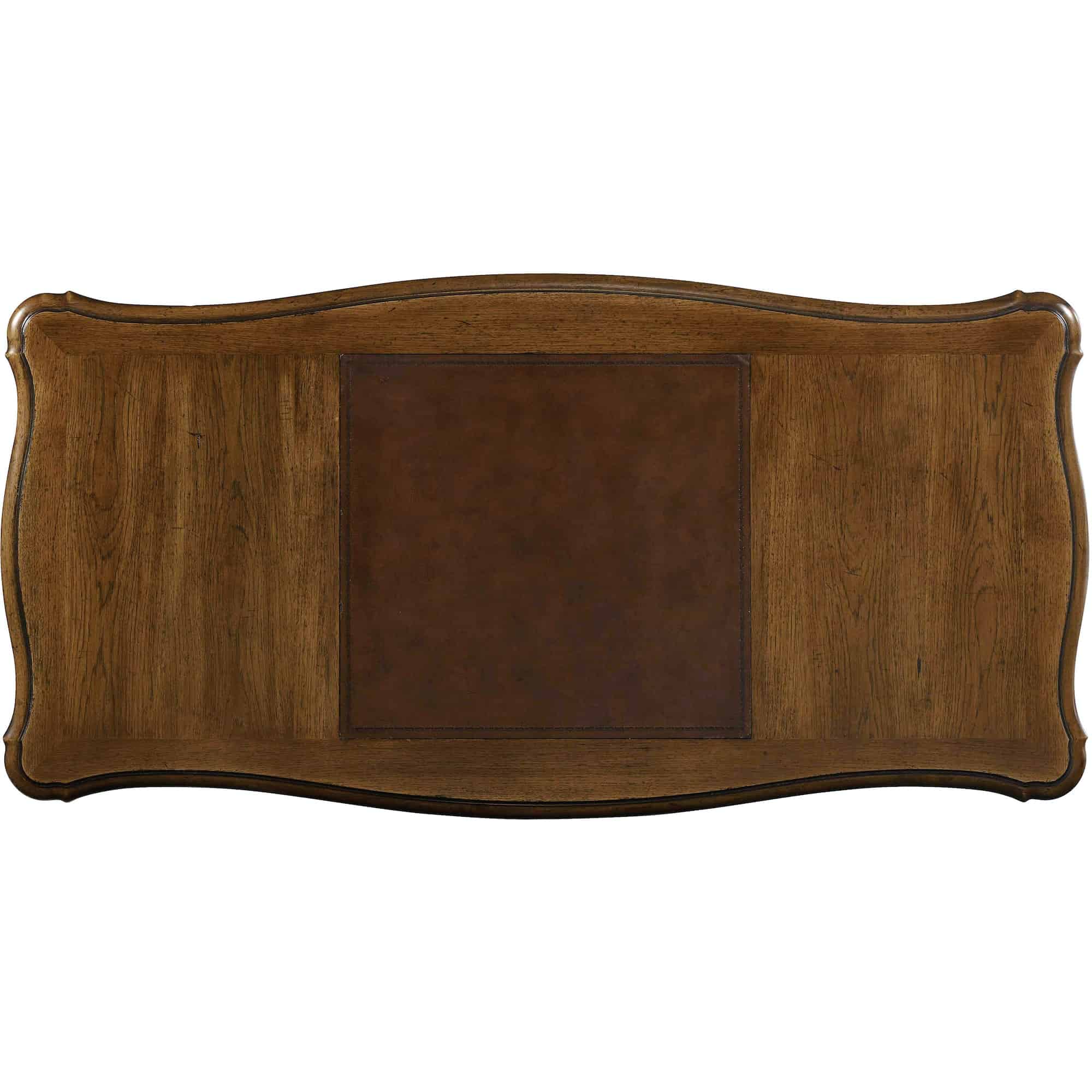 Finish: A soft casual finish over Pecky Pecan gives a rustic, character-filled and authentic look. The finish is complemented by antique-inspired hardware including kick plates, tear-drop-shaped pendants and ring pulls with back-plates in a time-worn bronze finish. Distressing includes rasping, chiseling, chain and cow-tailing.