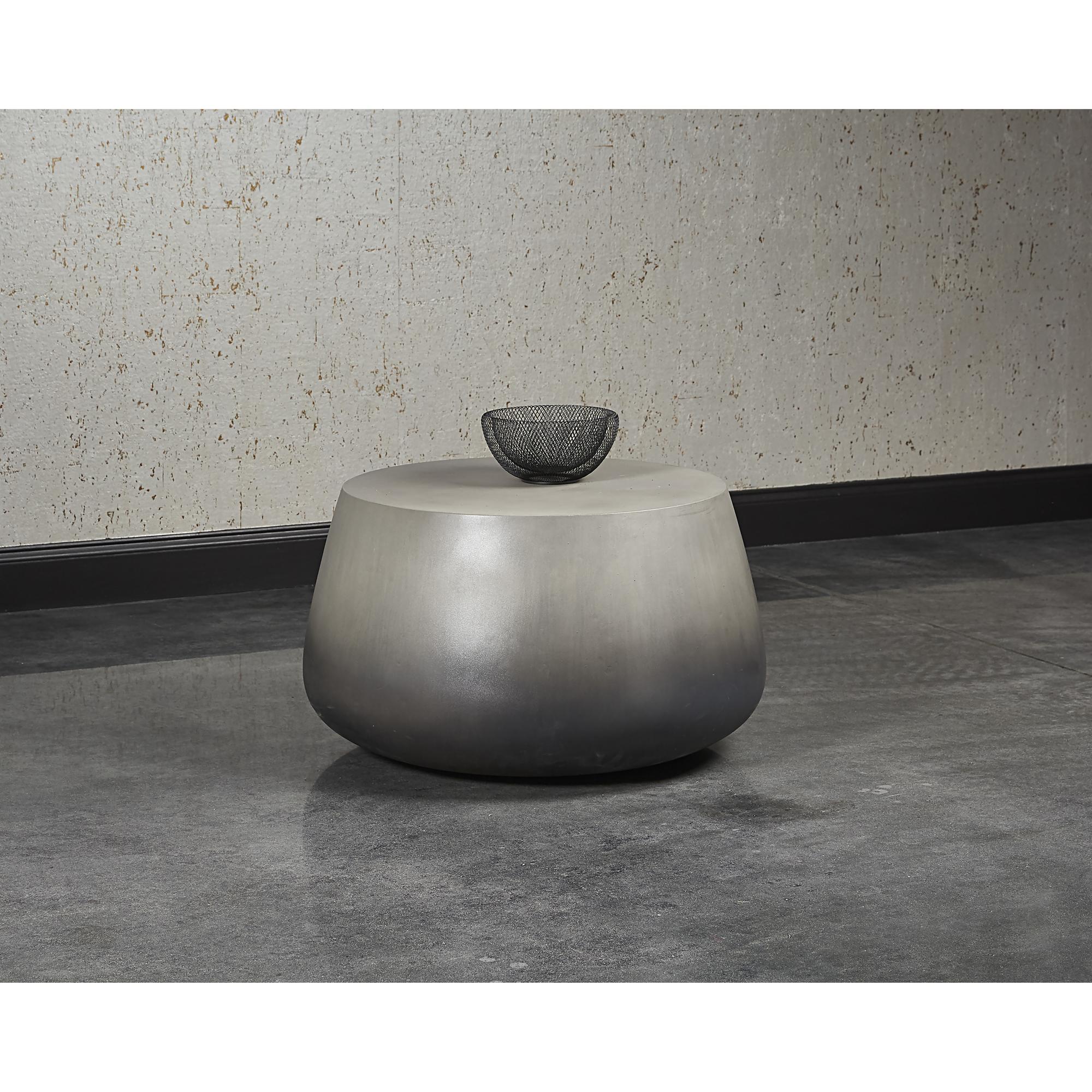 A beautiful concrete coffee table that will add boldness to any space. The drum-shaped design features a dramatic painted black ombre finish. A versatile and functional piece