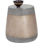 A beautiful side table with a stunning pop of metallic. The Aries is stocked in both gold and silver foil accents that pair perfectly with the industrial grey concrete. A versatile and functional piece suitable for indoor and covered outdoor spaces.