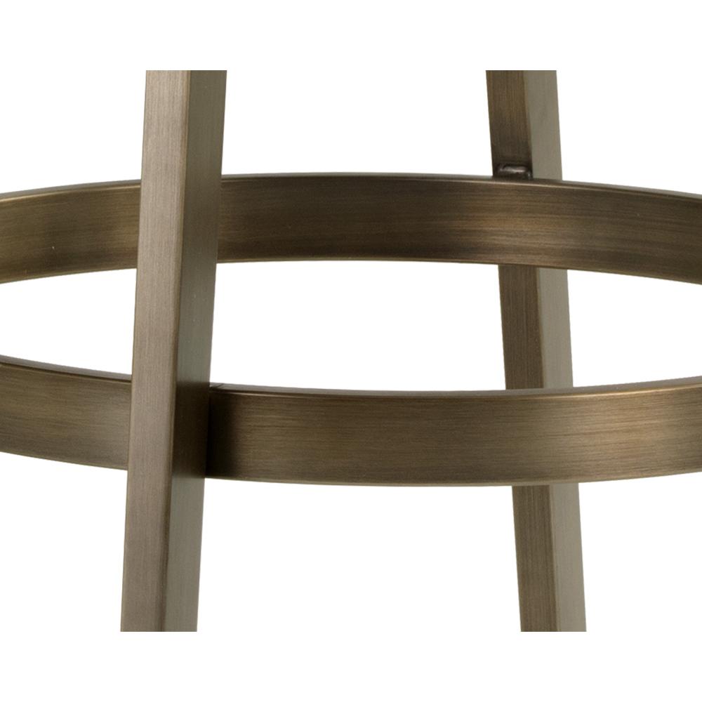 A stylish Art Deco inspired swivel counter stool with a low profile seatback. Features a partially exposed frame and legs made of stainless steel with an antique brass finish. Swivel features 360 degree swivel with 180 degree return. Suitable for residential and commercial environments. Handle With Care: This design has been crafted with faux leather. Faux leather is manufactured to reflect the natural characteristics of leather; as such, colour variations, markings wrinkles, grooves, and light scratches are appreciated characteristics. No two pieces will be alike.