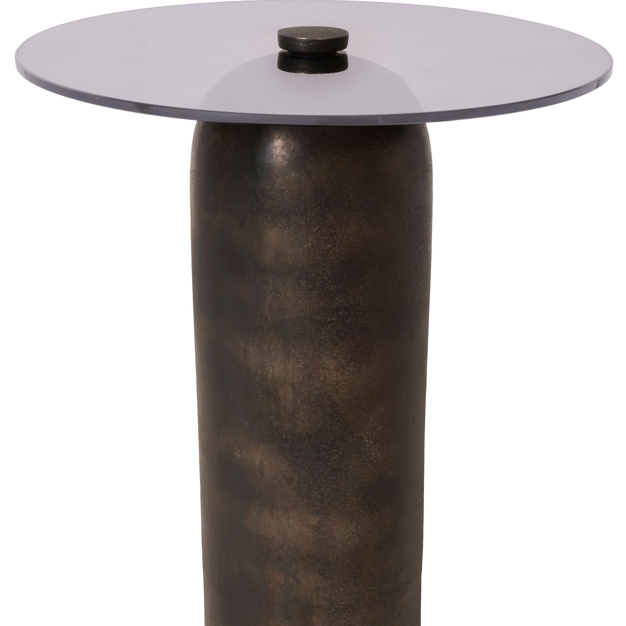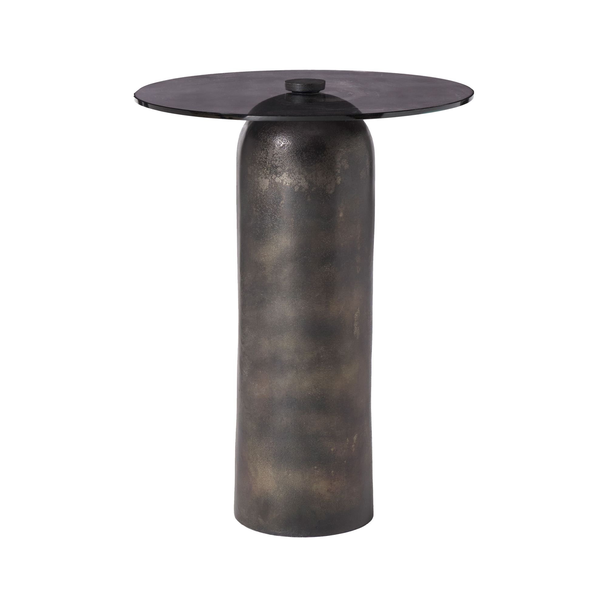 Mixing timeless materials with a minimalist silhouette, this smoky grey glass and charcoal-plated aluminum side table is poised to deliver an ultra-modern impact in any contemporary space. A stunning blend of form and function, place this accent table beside a sofa or lounge chair to make a bold statement in your home or office decorating project.