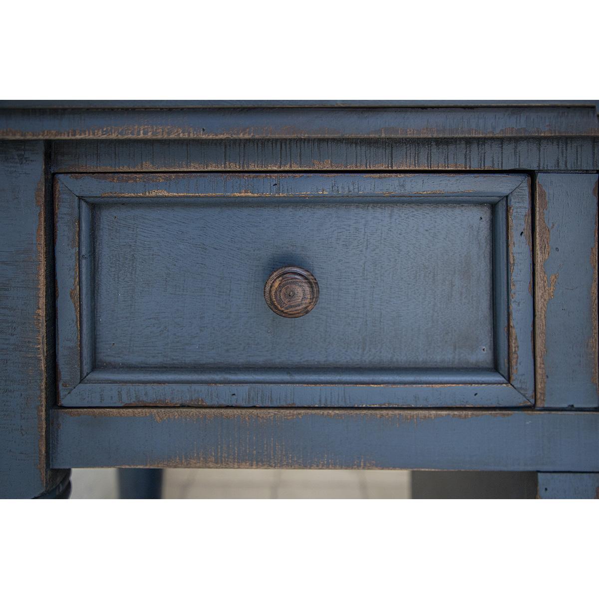 The Aruba collection is inspired by the grandeur of the Old World. Each piece is meticulously crafted from 100% sustainable mango wood. Our case goods boast elegantly hand-turned details that add a touch of sophistication to any space. The enchanting blue finish further enhances the inherent beauty of the mango wood, creating a truly distinctive texture and depth.