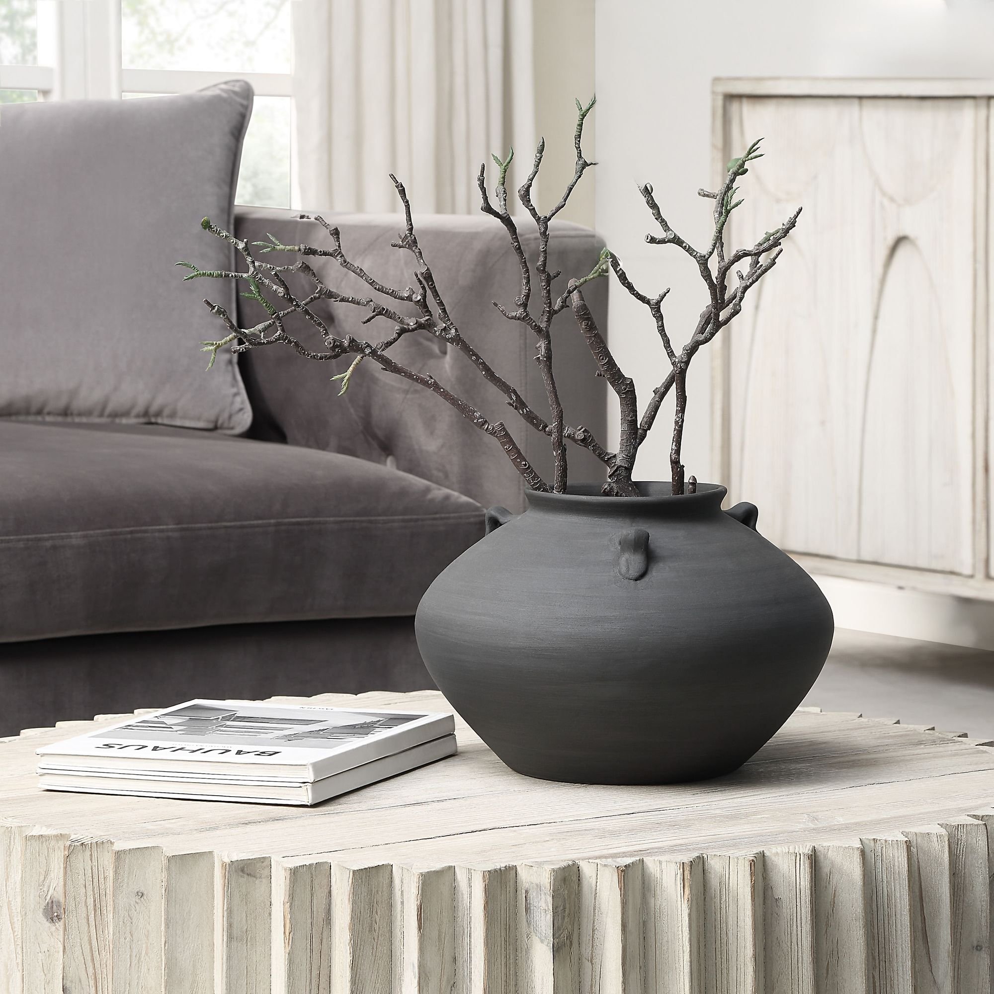 Incorporating a one-of-a-kind look and feel to any interior is a smart way to avoid cookie-cutter decorating. This vase features an antique black-painted finish and that special potter’s touch that ensures a high-end vibe worthy of your design project. And because it’s watertight, it can hold real branches or blooms to bring a dash of nature to any space.