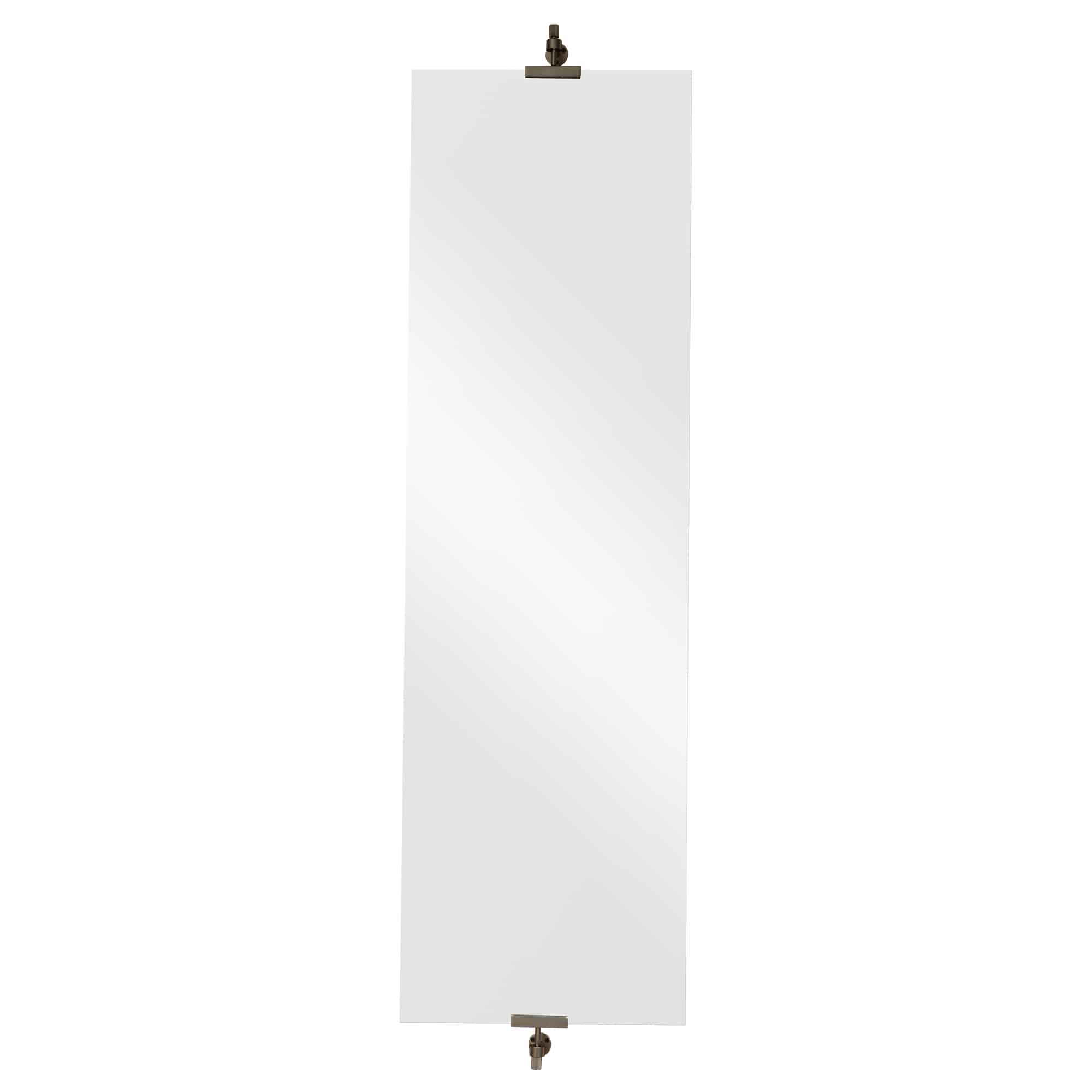 This all glass full-length leaner mirror finds inspiration in the industrial details of the Arts and Crafts movement. Metal clip hardware at the top and bottom of the rectangular looking glass secure the mirror in place, adding architectural appeal as it hangs vertically on bedroom and bathroom walls. With a mounting style reminiscent of an artist’s easel, every reflection becomes the subject of the canvas.