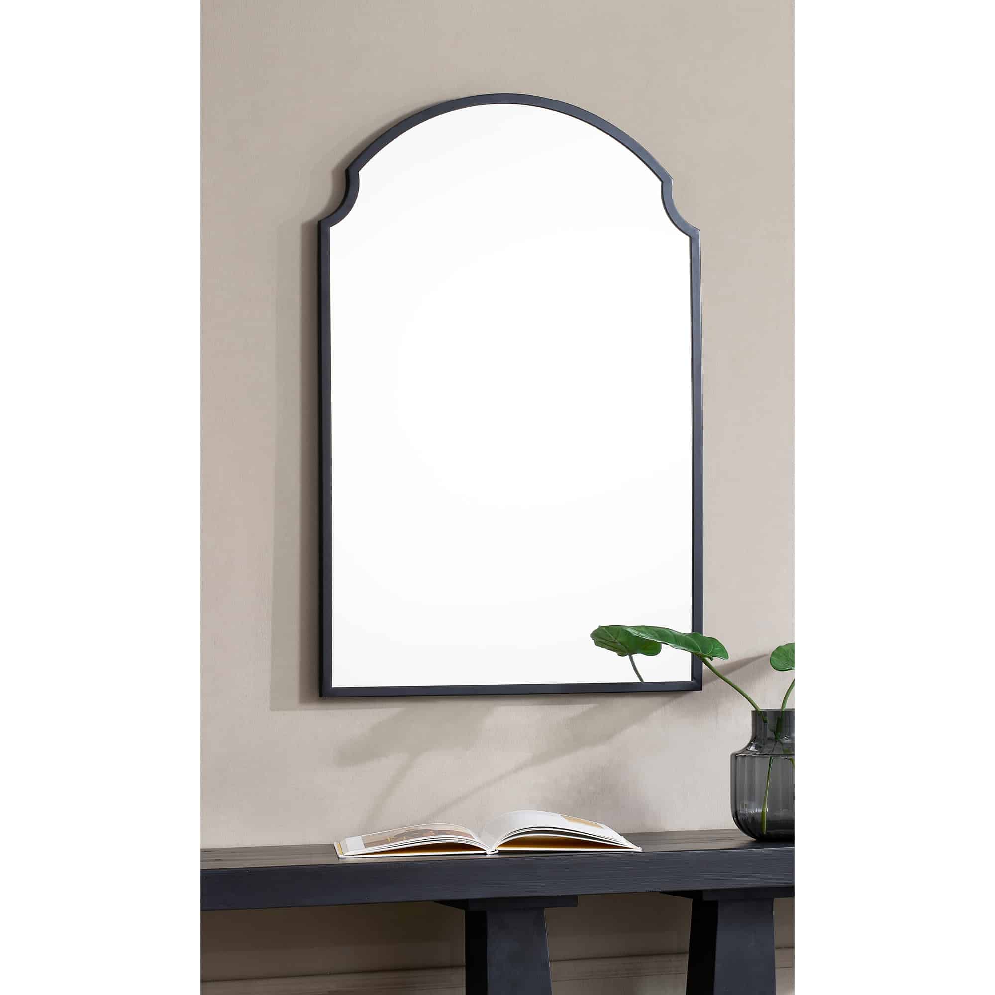 A matte black powder-coated finish adds a modern touch to a historically-inspired frame structure. At 24 inches in width and 36 in height, it holds impact in the entryway, bedroom or living room space. Within the classic interior it adds a dramatic edge while in the contemporary space it offers a touch of tradition.