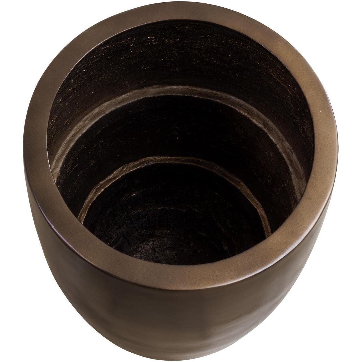 The contemporary form of the tall Aster Planter allows for a lush display of botanicals that will complement any decor. Constructed from glass fibre-reinforced concrete for increased durability with a protective sealant finish that allows it to withstand the elements. Designed with an antique bronze finish with an alluring sheen, this beautiful planter will be a welcome addition to large spaces such as hotel lobbies or building entrances. Includes holes for drainage, two steps, and two removable shelf inserts.