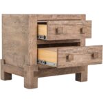 Bring the beauty of nature indoors with the Atenas Bedroom Set. Experience the harmony of style and functionality. Made from Mango and Melina wood, it features a multi-step lacquer finish that provides a smooth and polished appearance, making it not only aesthetic but also easy to maintain. The natural brown finish accentuates the wood’s unique grain patterns, guaranteeing that each item is unique. The Atenas Nightstand features two drawers for ample storage. The simple wood-squared pulls on the drawers blend seamlessly with the overall modern rustic design. Standing on sturdy legs, this dresser provides stability and a touch of rustic charm, perfect for elevating any bedroom decor.