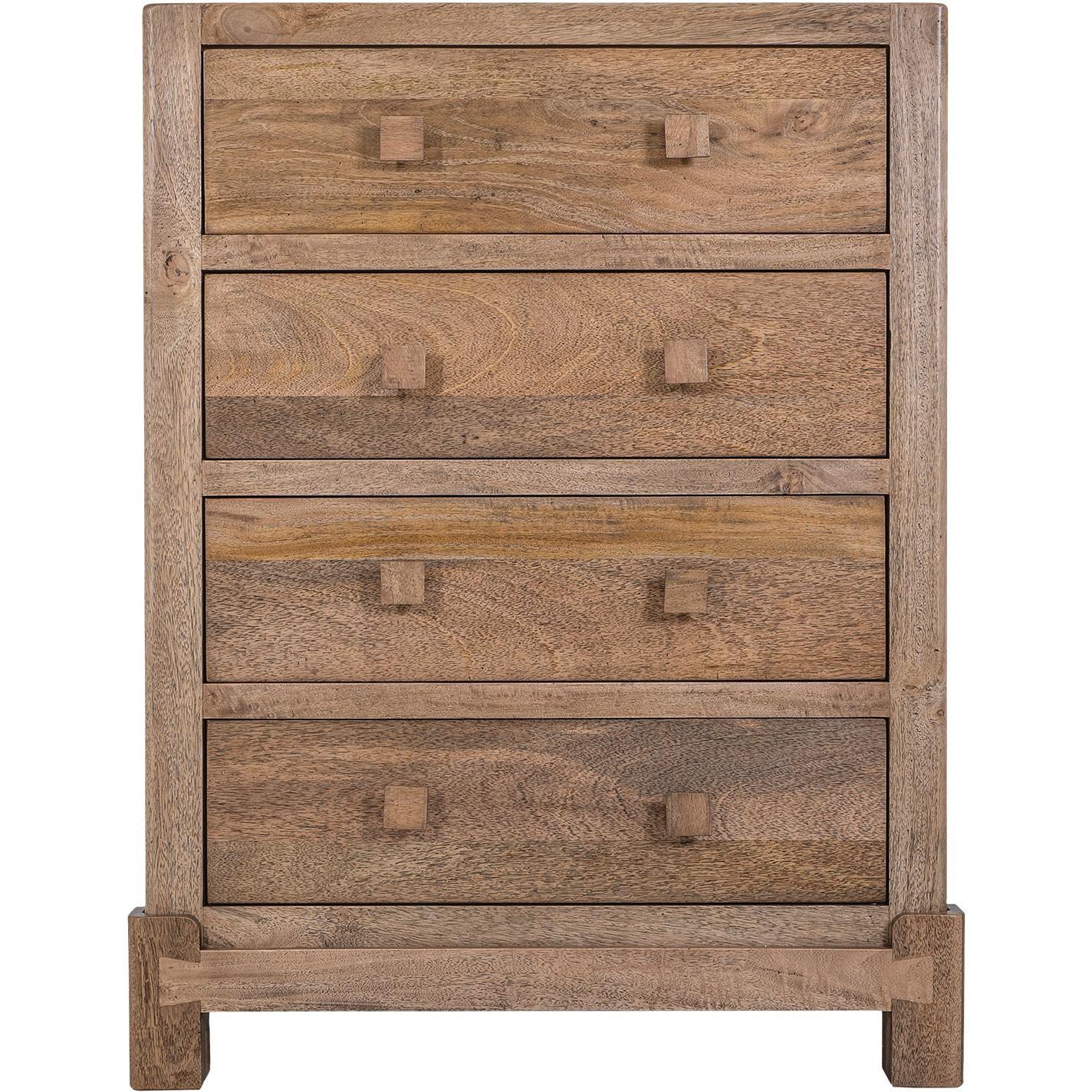 Bring the beauty of nature indoors with the Atenas Bedroom Set. Experience the harmony of style and functionality. Made from Mango and Melina wood, it features a multi-step lacquer finish that provides a smooth and polished appearance, making it not only aesthetic but also easy to maintain. The natural brown finish accentuates the wood’s unique grain patterns, guaranteeing that each item is unique. The Atenas Chest features four drawers for ample storage. The simple wood-squared pulls on the drawers blend seamlessly with the overall modern rustic design. Standing on sturdy legs, this chest offers stability and a touch of rustic charm, ideal for enhancing any bedroom decor.