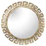 Elevate your space with this striking cast aluminum mirror, featuring a beautifully textured gold-plated finish that highlights its timeless geometric design. The sculptural frame adds depth and dimension while reflecting light with subtle warmth and sophistication. Equipped with D-rings and adjustable hanging wire.