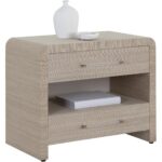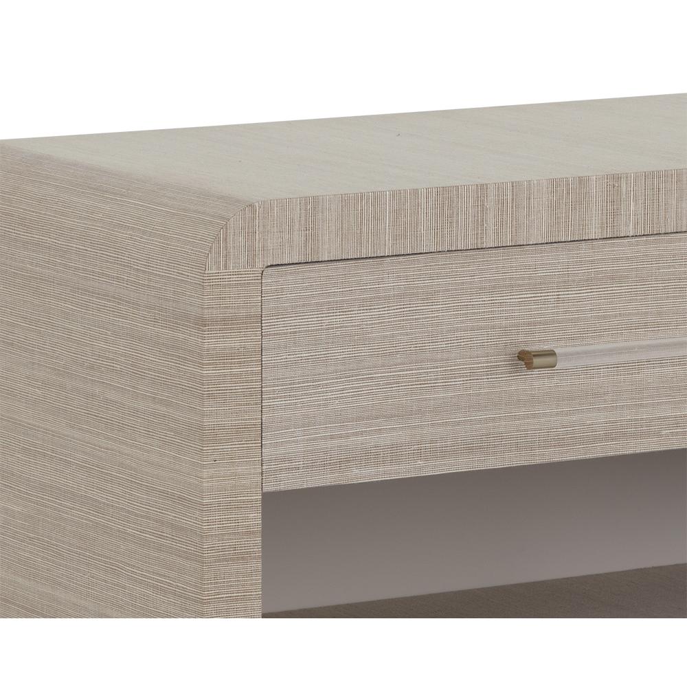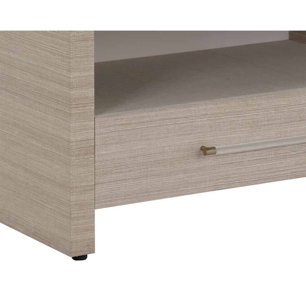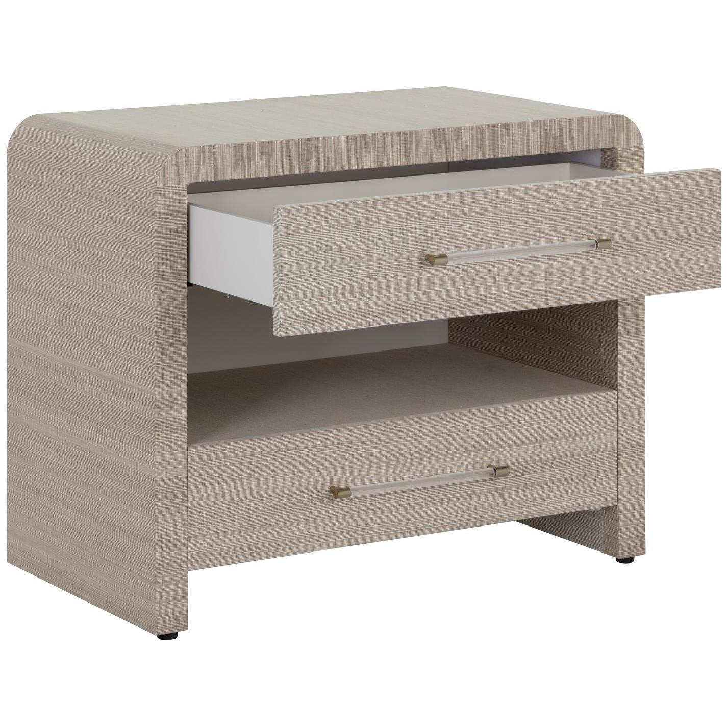 Fusing modern style with a design inspired by global travels, this richly textured nightstand will add definition to any space. Crafted from a wooden frame with a sand raffia covering. Features two soft-closing drawers with steel and clear acrylic handles. Anti-tip kit included. Handle With Care: This design has been crafted with raffia. Each item will exhibit unique traits such as texture and thickness variations that add to the natural character of this finely woven material. Visit our Product Care page for more information on how to ensure the lasting beauty of this piece. As wood is an organic, porous material, these pieces will contain natural variation of texture and may also exhibit fine indentations and cracks. Wood pieces will also display a disparity of colour and grain, and visible knots and burls that add to the character of each piece.