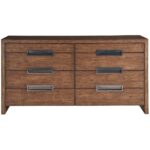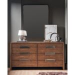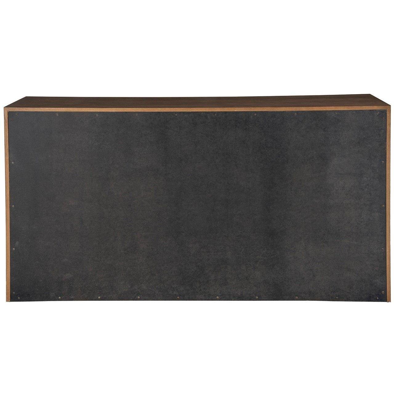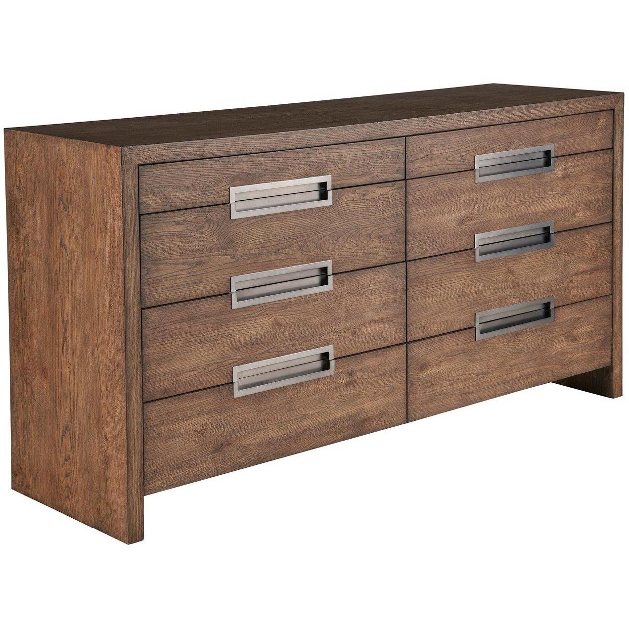 The Atlas Drawer Dresser presents a commanding presence with its eight drawers, finished in a medium Brown Oak. The design is distinguished by dark centered pulls, offering an astute and robust character that effortlessly anchors any room with a sense of refined strength and sophistication.