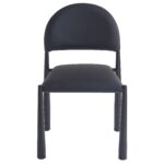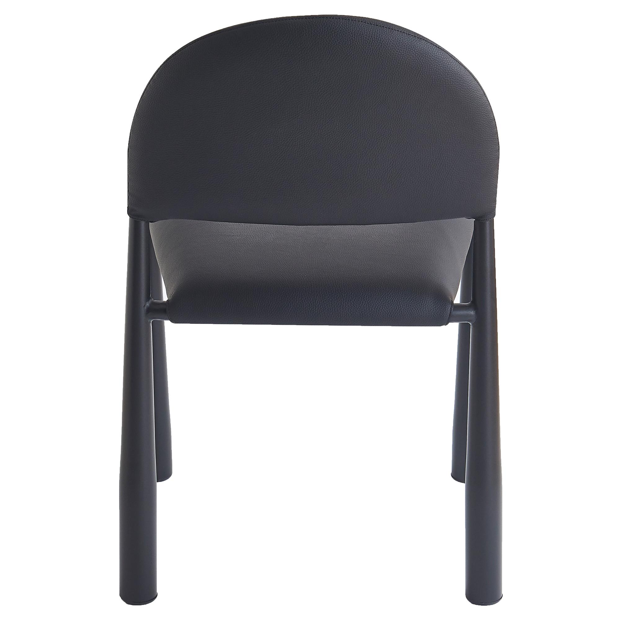 Mid-century influence on this modern chair has results in this unique dining chair. Rounded back and legs create an inviting look, while the textured black faux leather upholstery keeps it fresh and on-trend. Perfect for formal or casual spaces, will match with a variety of table styles and colours.
