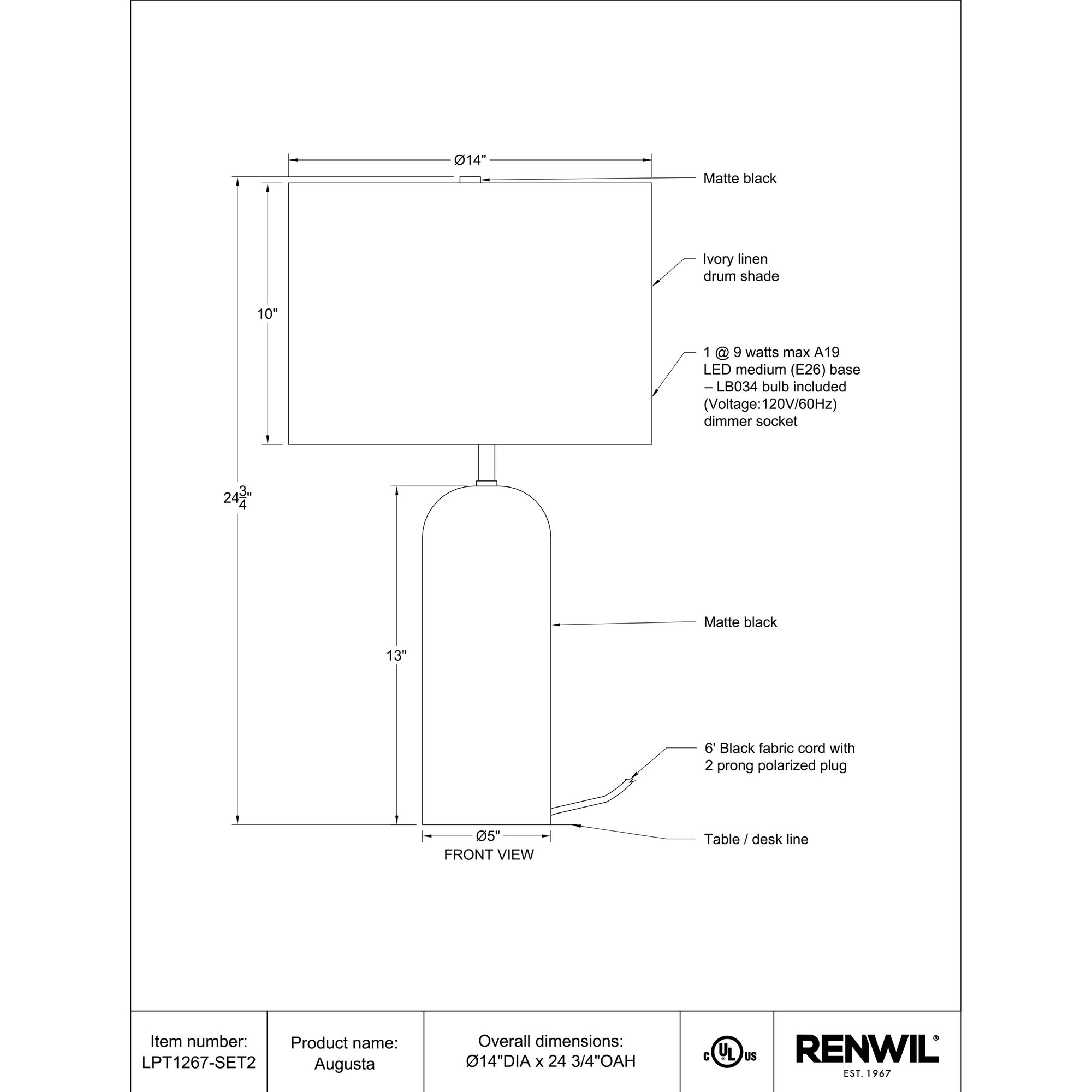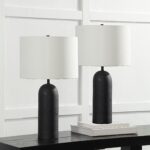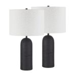 Upgrade your home decor with the sleek and stylish Augusta 25″ Tall Black Resin Table Lamp. Its stunning black finish, paired with the off-white linen drum shade, creates a contemporary look that will elevate any space. This lamp conveniently connects with standard E26 sockets and supports bulbs up to 100W, ensuring compatibility with a wide range of lighting options. The equipped dimmer socket allows customizable lighting to set the mood for any occasion. This set of 2 lamps will provide a complete ensemble in any room, making the table lamp a must-have addition to your home.