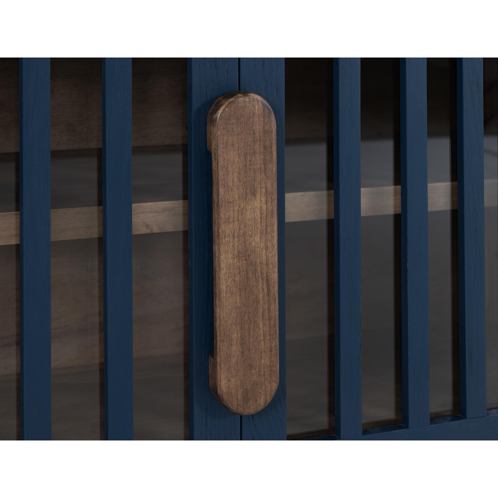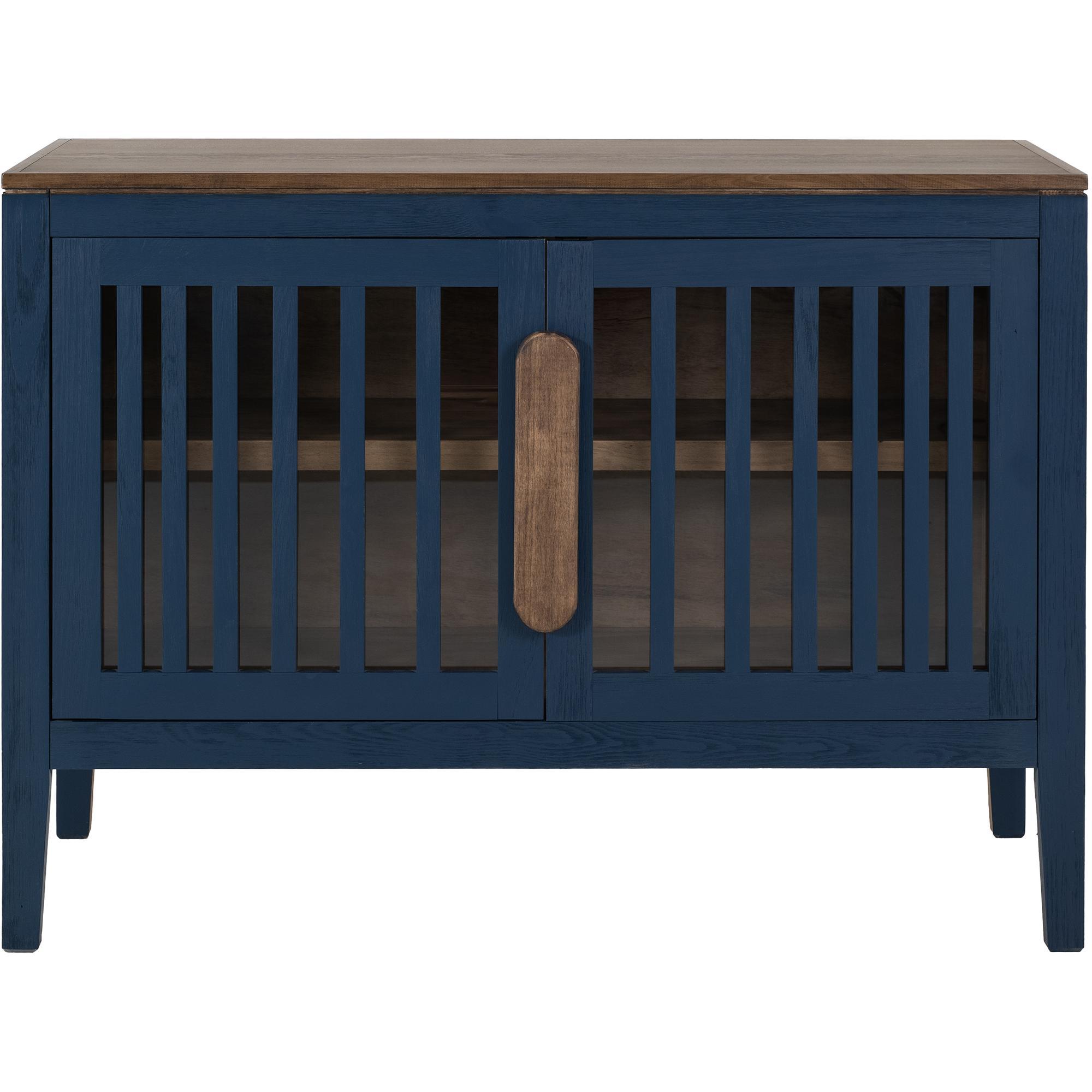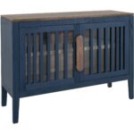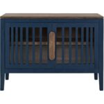 The Autumn Console is a beautiful piece designed to enhance your living space by combining classic elegance with modern practicality. Meticulously crafted from durable pine wood, this exquisite console showcases blue and brown finishes that add character to any room. The console features a well-thought-out design, including a fixed shelf for convenient storage; this allows you to keep your space organized while displaying decorative items. The slatted doors, equipped with overlay hinges and magnetic catches, ensure secure closure, combining functionality with style. The integrated wooden handles, finished in a warm brown, enhance the overall aesthetic, while the unique floated top design adds a distinctive touch. Perfect for living rooms, entryways, or even home offices, the Autumn Console provides essential storage and a beautiful focal point in your decor. Its high-quality craftsmanship and elegant appearance make it a timeless addition to any home.