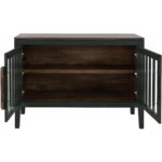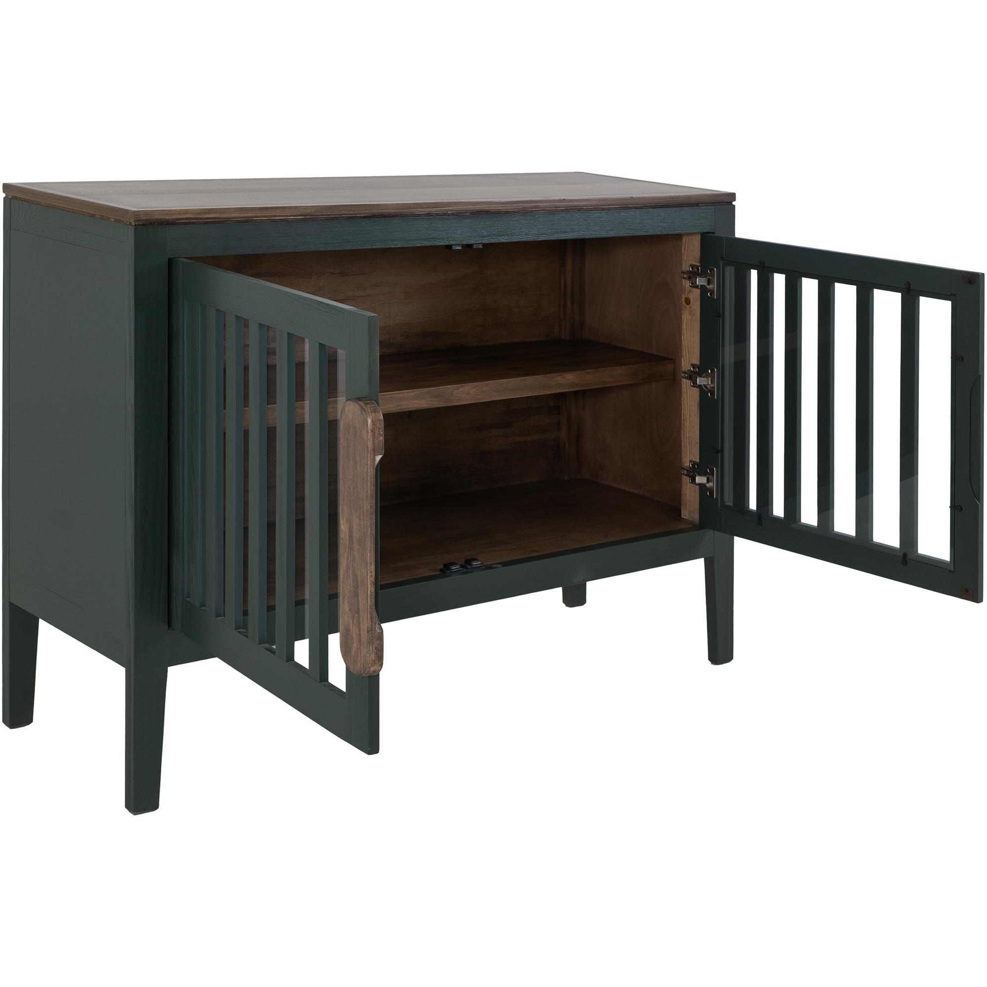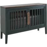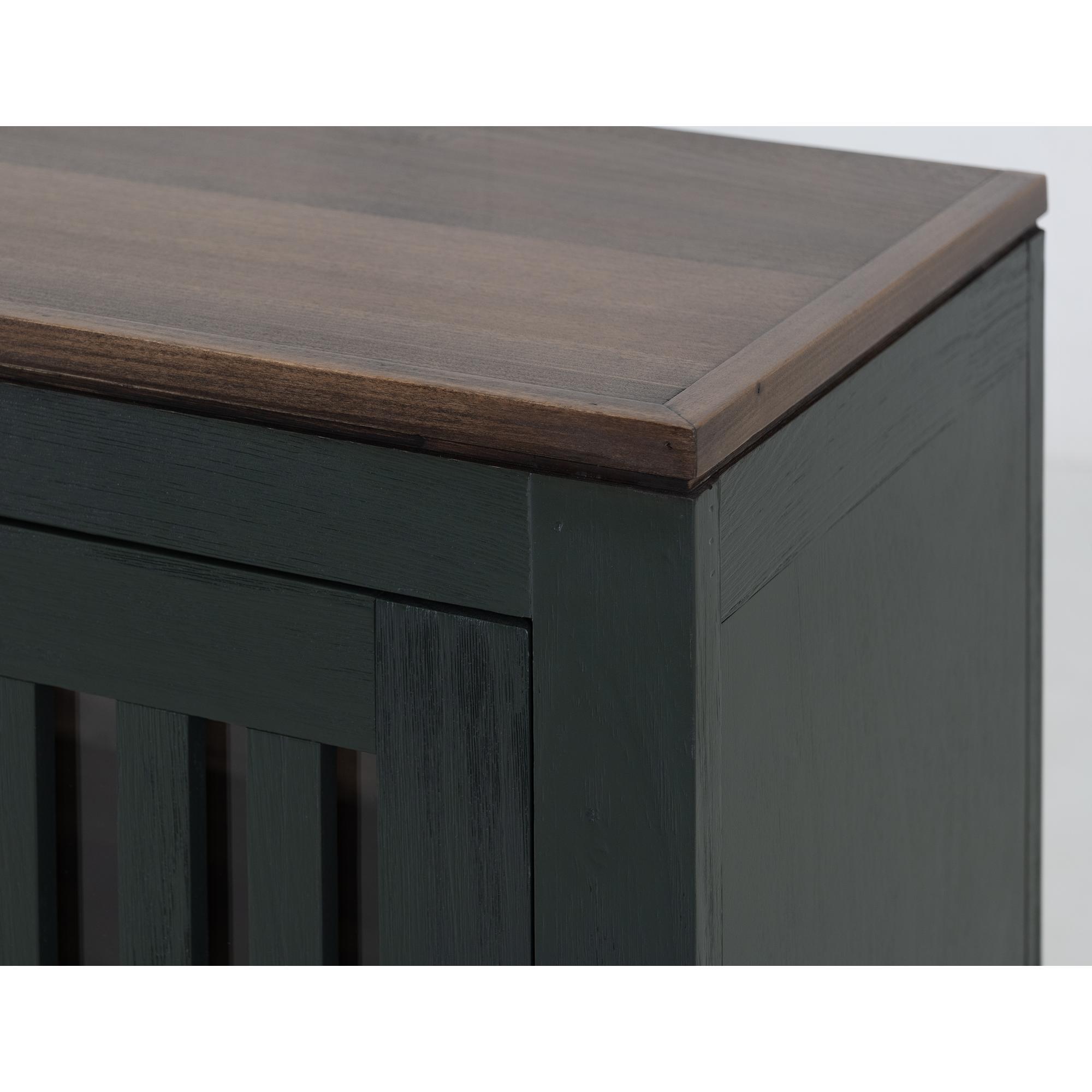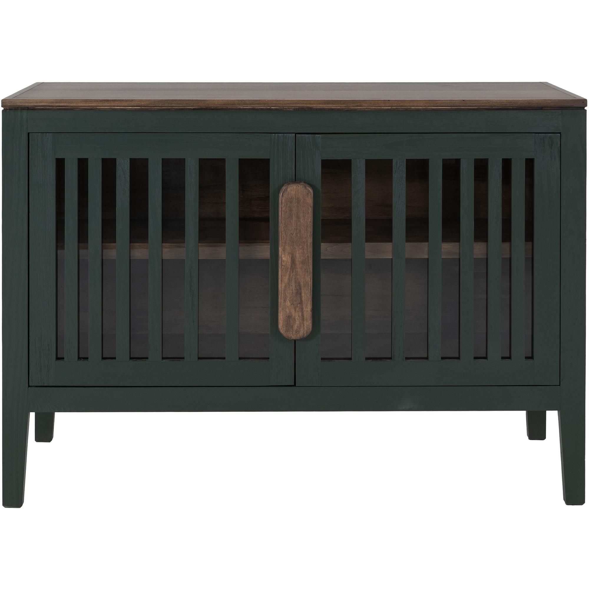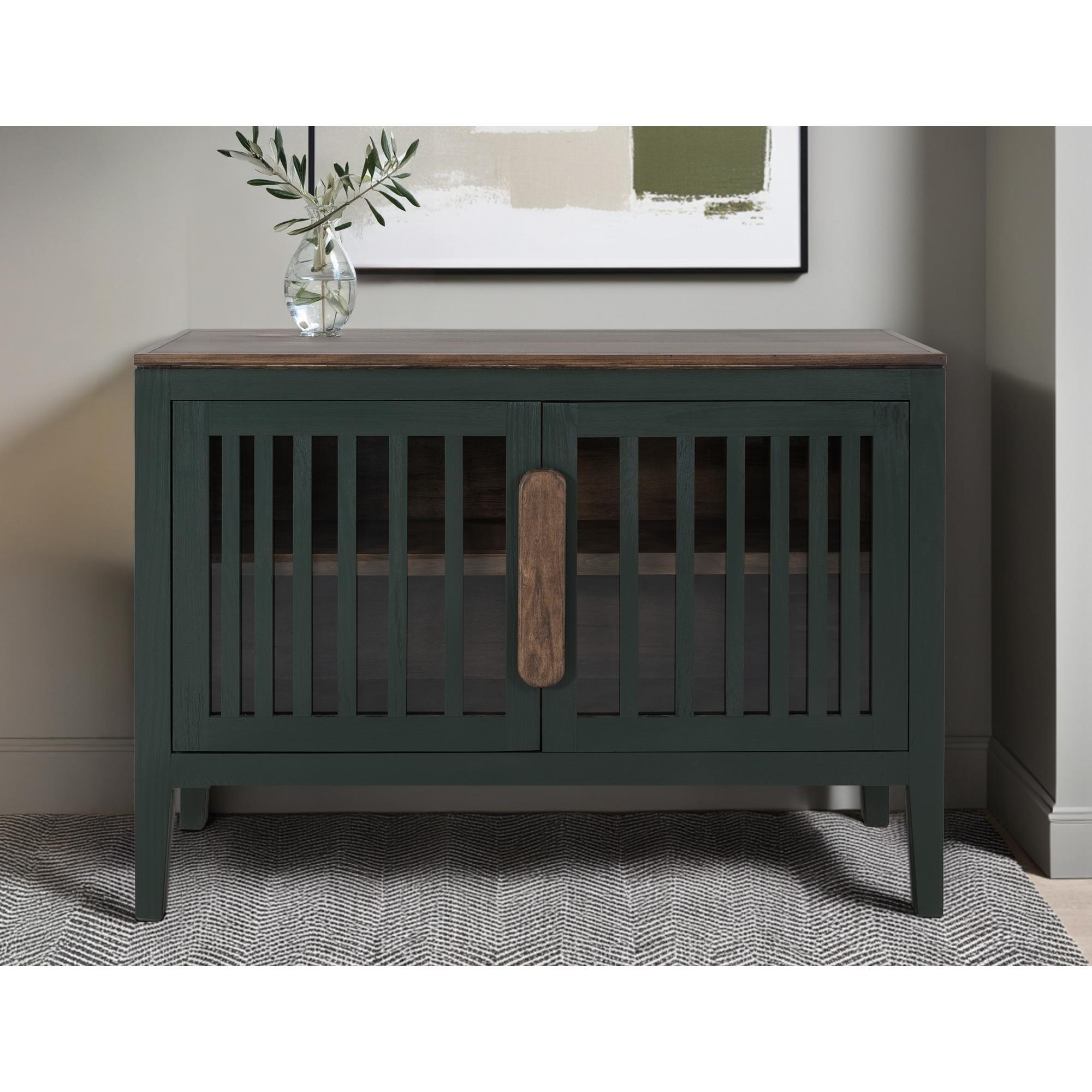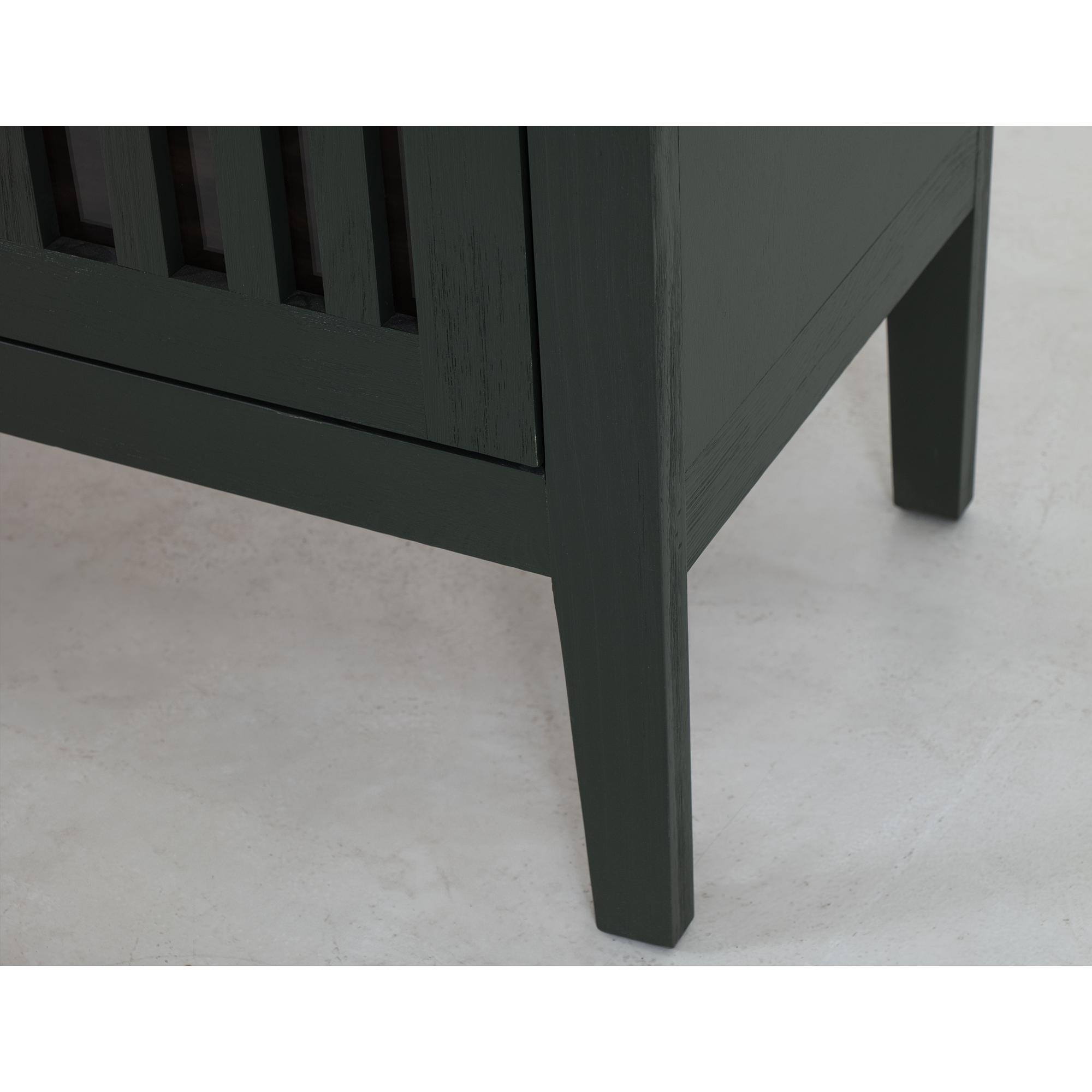 The Autumn Console is a beautiful piece designed to enhance your living space by combining classic elegance with modern practicality. Meticulously crafted from durable pine wood, this exquisite console showcases green and brown finishes that add character to any room. The console features a well-thought-out design, including a fixed shelf for convenient storage; this allows you to keep your space organized while displaying decorative items. The slatted doors, equipped with overlay hinges and magnetic catches, ensure secure closure, combining functionality with style. The integrated wooden handles, finished in a warm brown, enhance the overall aesthetic, while the unique floated top design adds a distinctive touch. Perfect for living rooms, entryways, or even home offices, the Autumn Console provides essential storage and a beautiful focal point in your decor. Its high-quality craftsmanship and elegant appearance make it a timeless addition to any home.