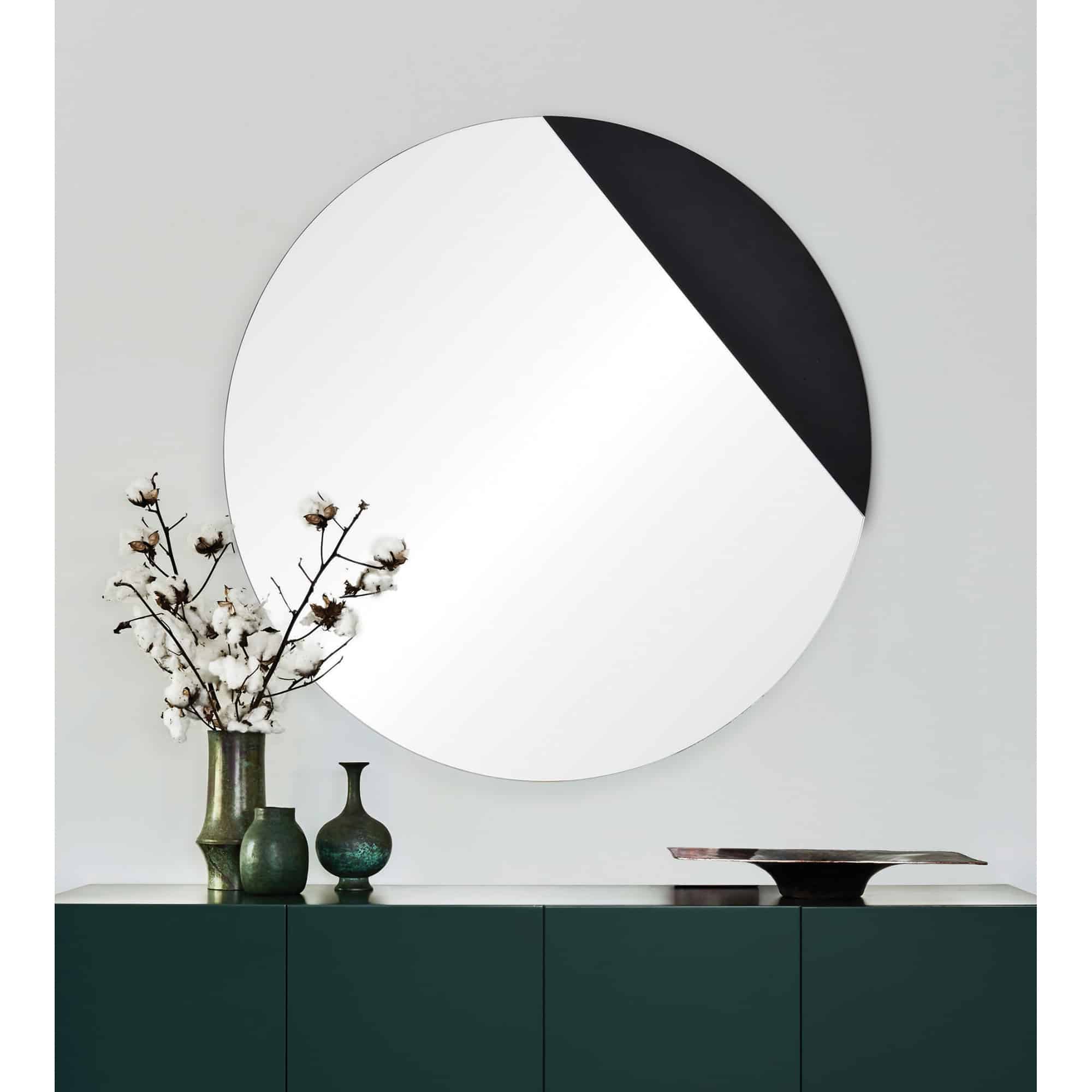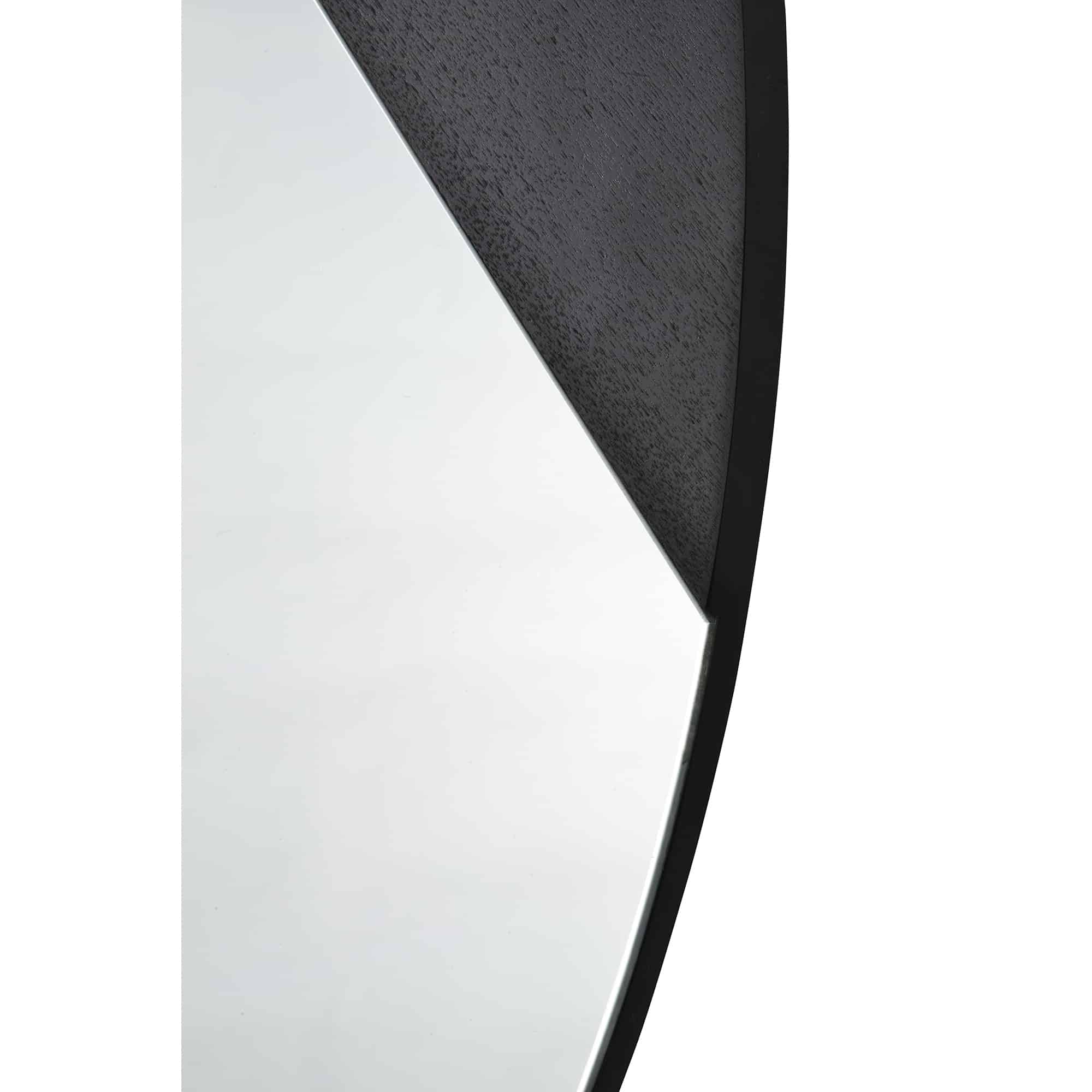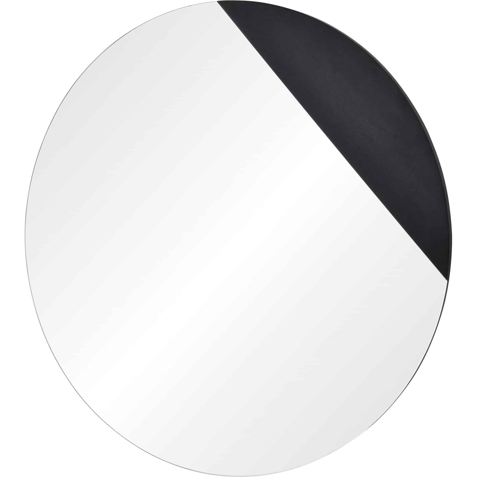 Contemporary style radiates from this unique spherical mirror. With a black veneer finished wood element, this piece makes a bold statement through its minimal design. Ideal for the modern home, it is perfectly suited to hang above a vanity or entryway table.