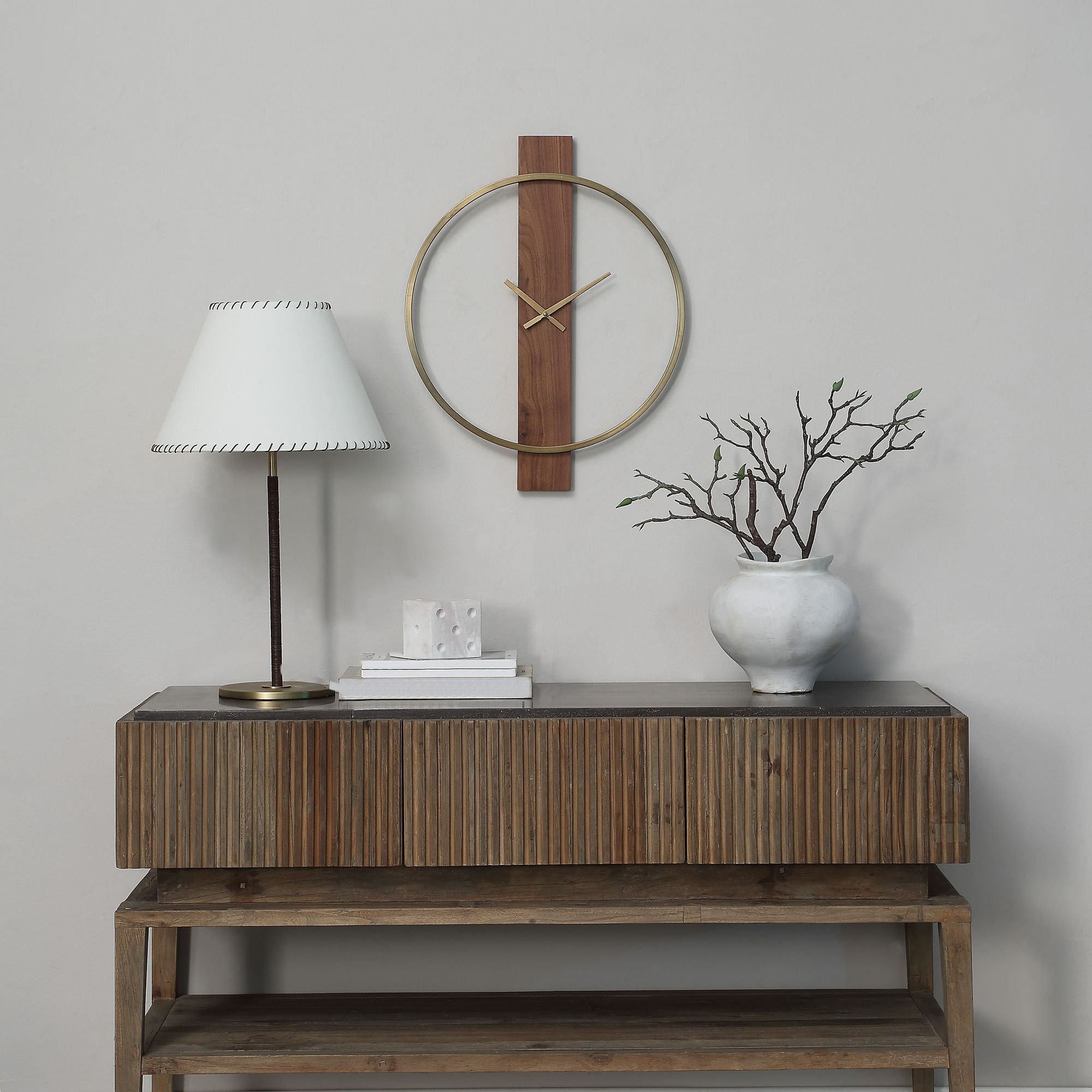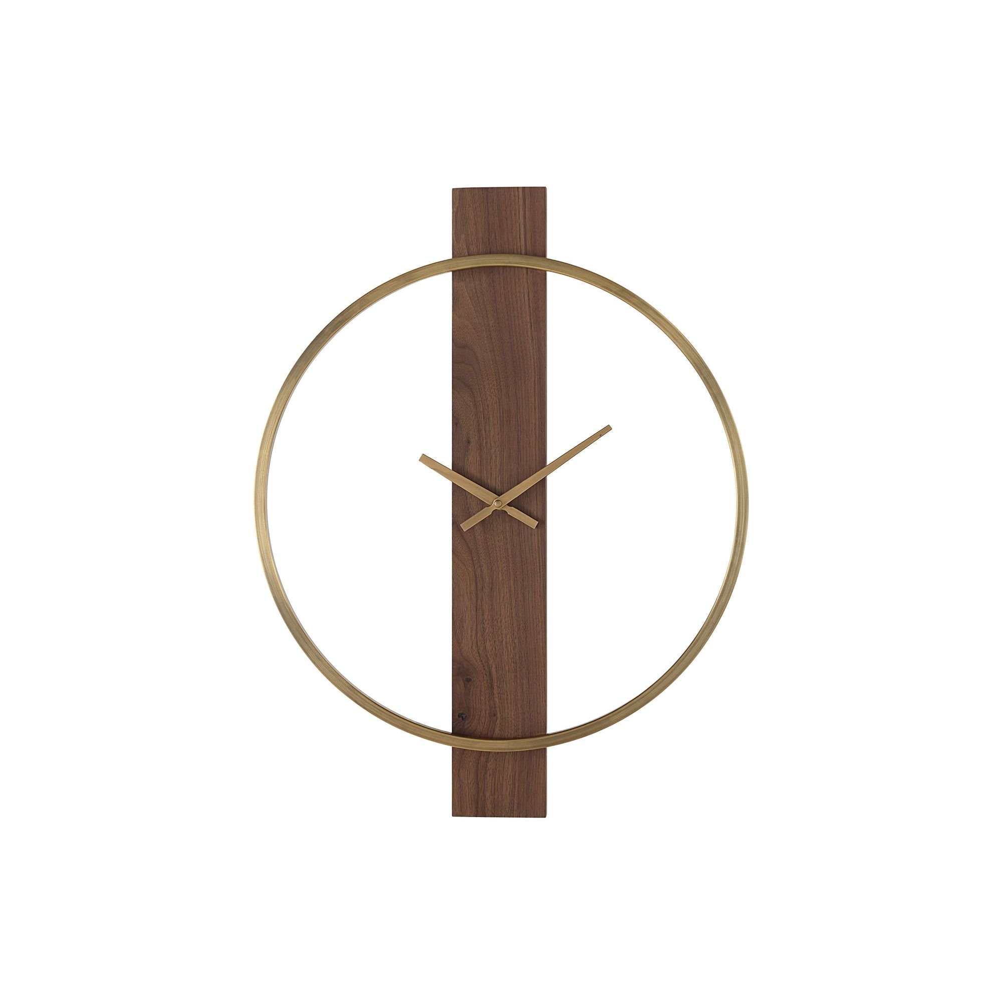 With an enduring mid-century modern style, time-keeping perfection is all yours when you have this stunning wall clock in your decorating plan. Well-suited for any contemporary space, its handsome design comes to life through walnut wood with antique brushed brass accents to deliver the perfect mix of form and function.