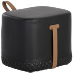 A masculine square ottoman stocked in a napa black faux leather with a contrasting napa cognac faux leather strap. Diamond tufting completes the design. Handle With Care: This design has been crafted with faux leather. Faux leather is manufactured to reflect the natural characteristics of leather; as such, colour variations, markings, wrinkles, grooves, and light scratches are appreciated characteristics. No two pieces will be alike. Visit our Product Care page for more information on how to ensure the lasting beauty of this piece.