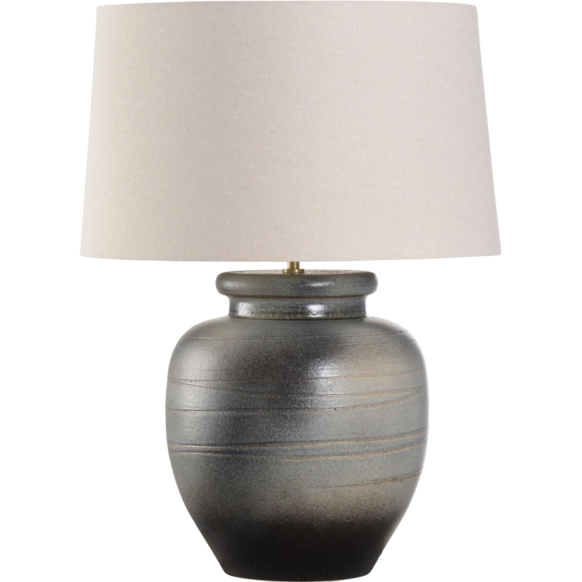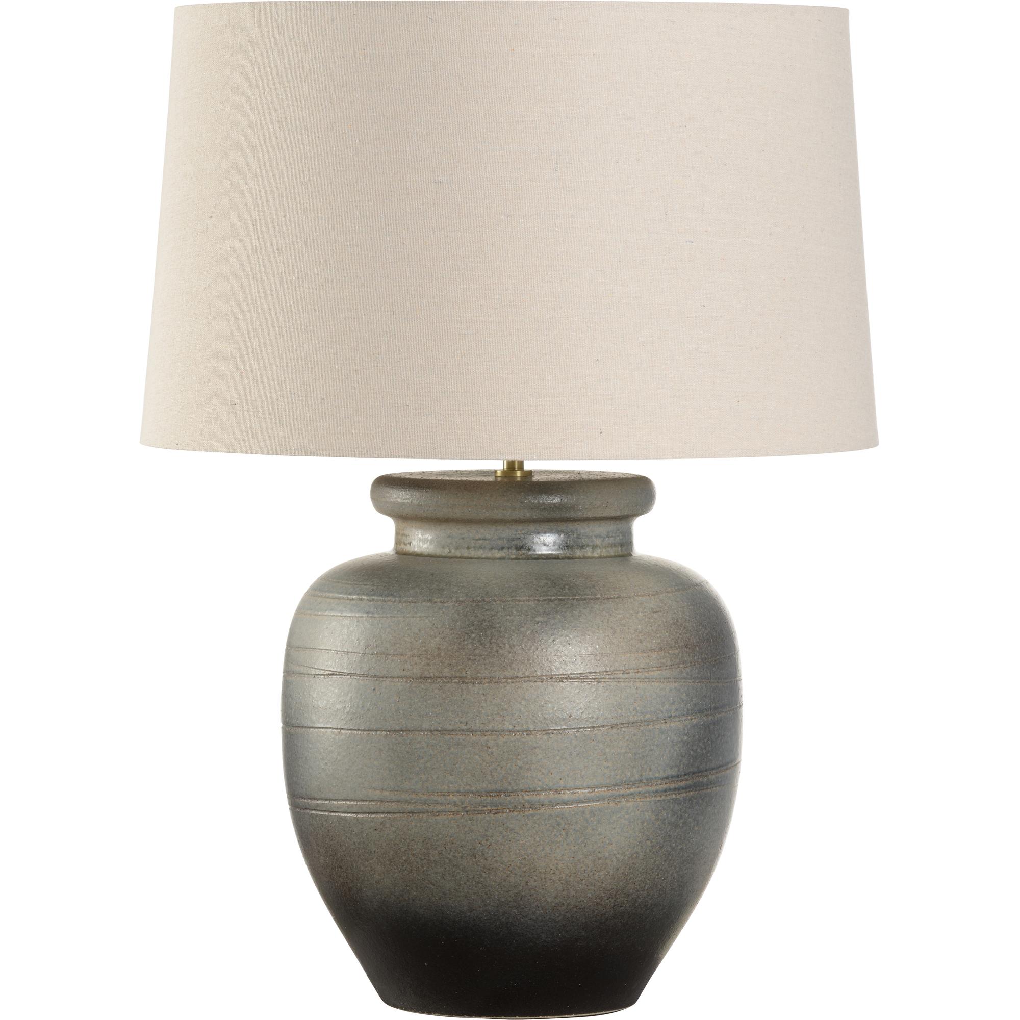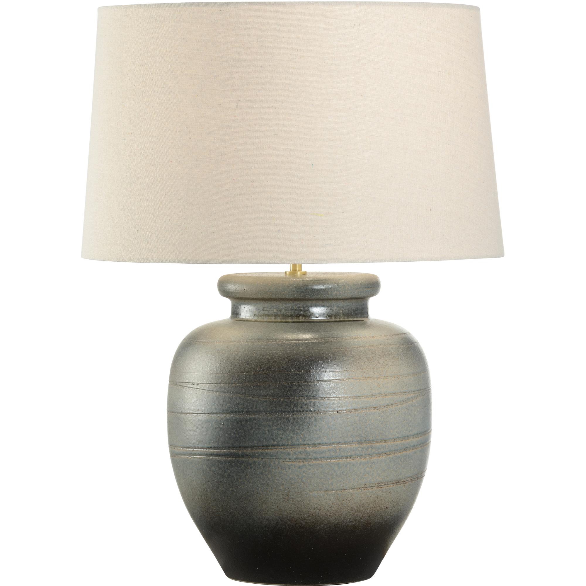 The Ayaka Table Lamp, part of the Shiga collection, is hand turned and finished in one of six ancient kilns in Japan. The elements from the soil of Shiga create this unique artful lamp completed with cloth wiring and topped with a refined rolled-edge linen shade. Made in Japan.