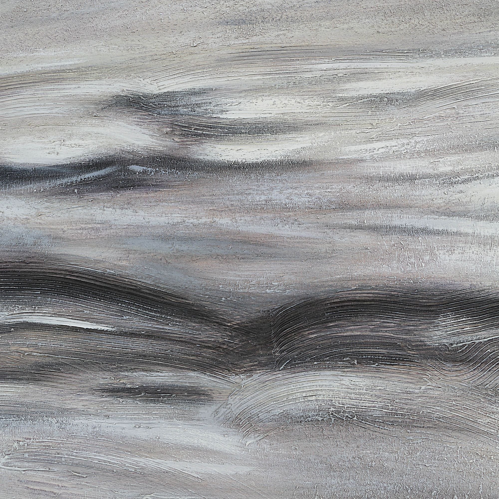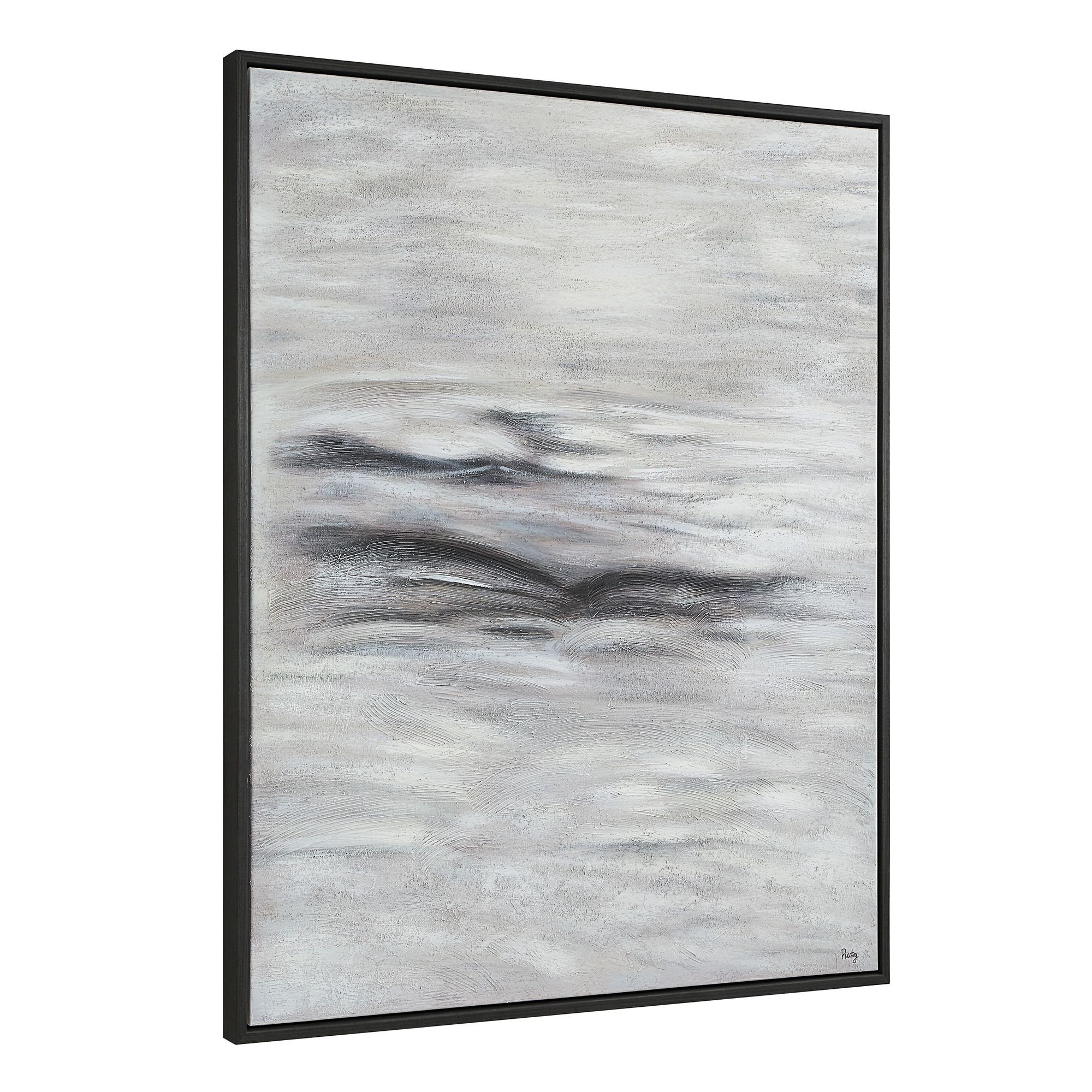 Welcome this contemporary piece into any modern interior for a stylish update. Painted by hand with loads of heavy texture, this dark grey veneer-framed canvas art features a tonal palette and large-scale dimensions that make it a perfect choice as your design project’s next attention-grabbing addition.