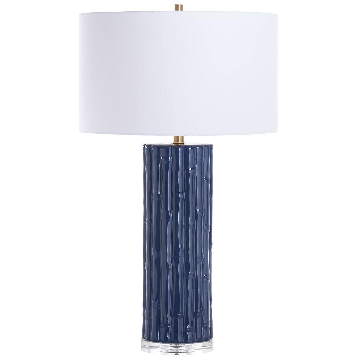 The Bailey Table Lamp brings modern texture and timeless color together in one striking design. Its navy ceramic base features a dimensional bamboo-inspired pattern, finished with a clear acrylic foot for a touch of contemporary polish. Topped with a crisp white linen drum shade, this lamp balances bold style with effortless sophistication. Perfect for coastal, transitional, or modern interiors, the Bailey Lamp adds refined depth and a pop of color to any sp
