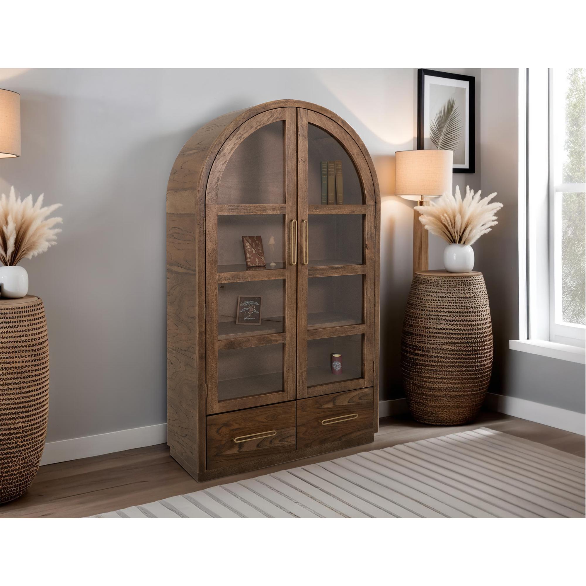 This beautifully crafted cabinet, part of the Balam Collection, is both stylish and functional. It features two glass-paneled doors that provide a clear view of the interior, making it perfect for showcasing your cherished items. Below the doors, two spacious drawers offer extra storage. The cabinet’s design combines modern elegance with practicality, making it a versatile addition to any room.