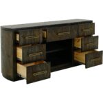 - The Black Balam Console features multiple drawers and a fixed shelf, providing ample storage to keep your space organized and stylish.