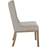 - This chair is upholstered in 100% polyester. Its attractive design provides comfort and durability, making it an excellent choice for any dining setting.