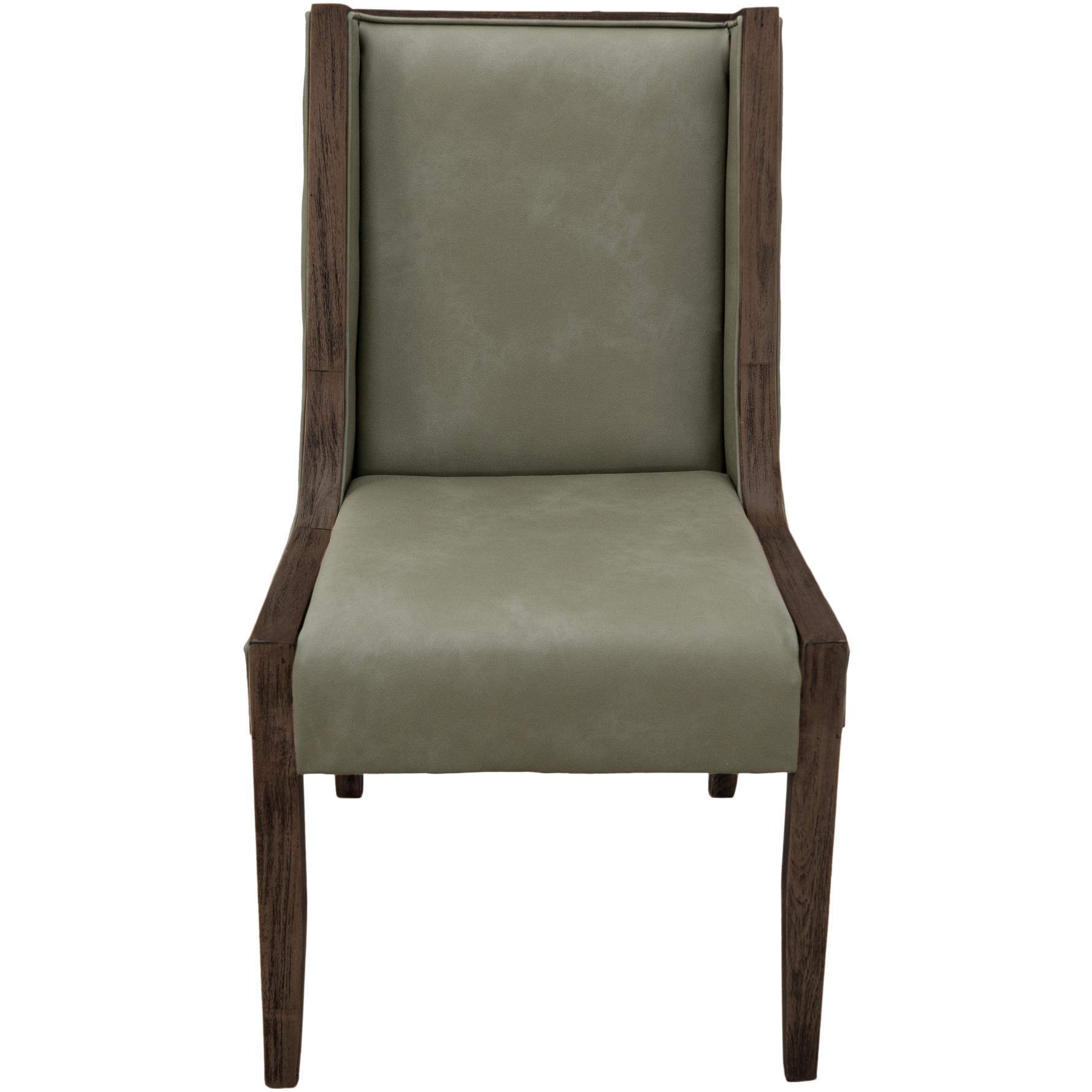 - This chair is upholstered in faux leather. The rich texture and finish of the material provide both comfort and durability, making it an excellent choice for any dining setting.