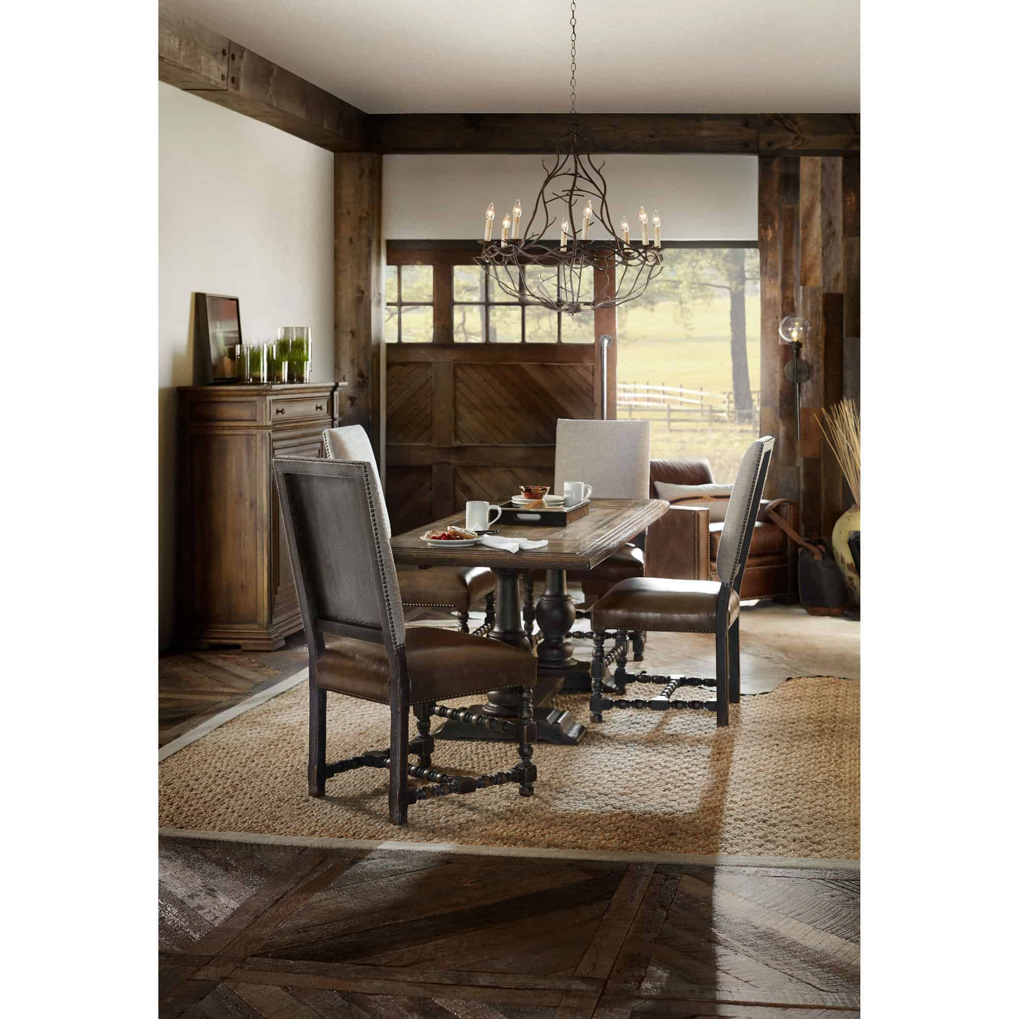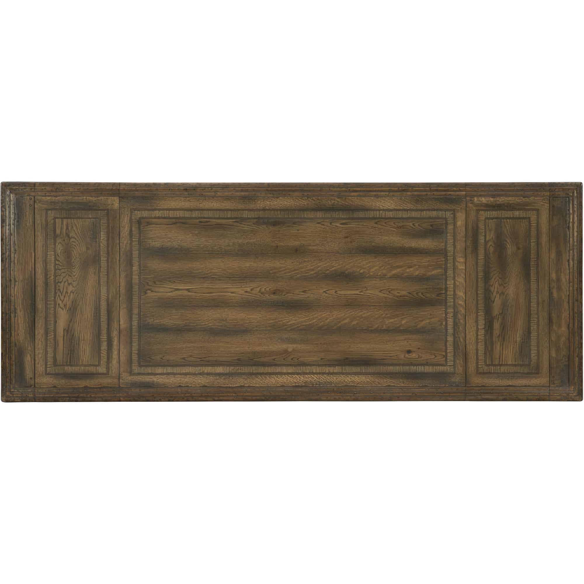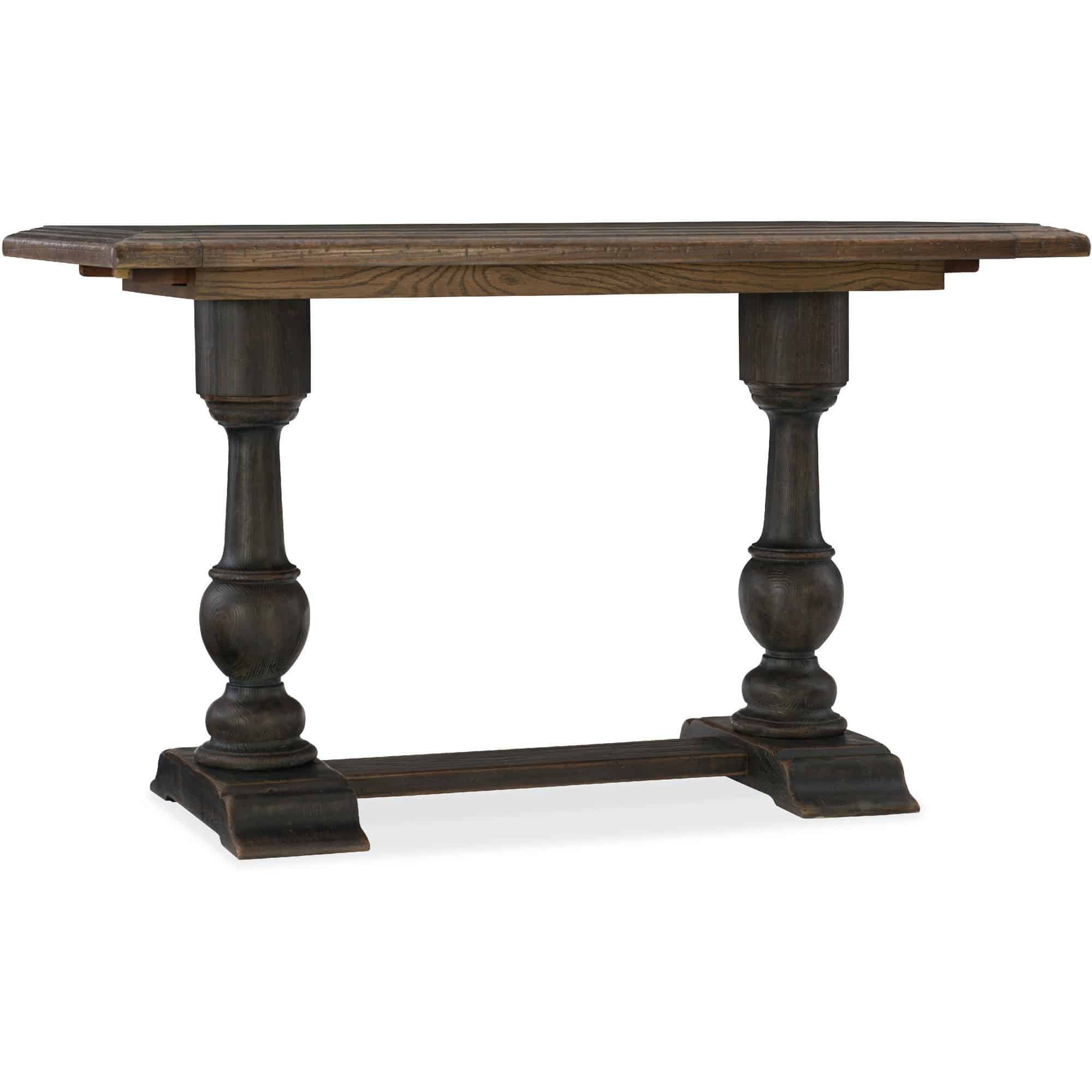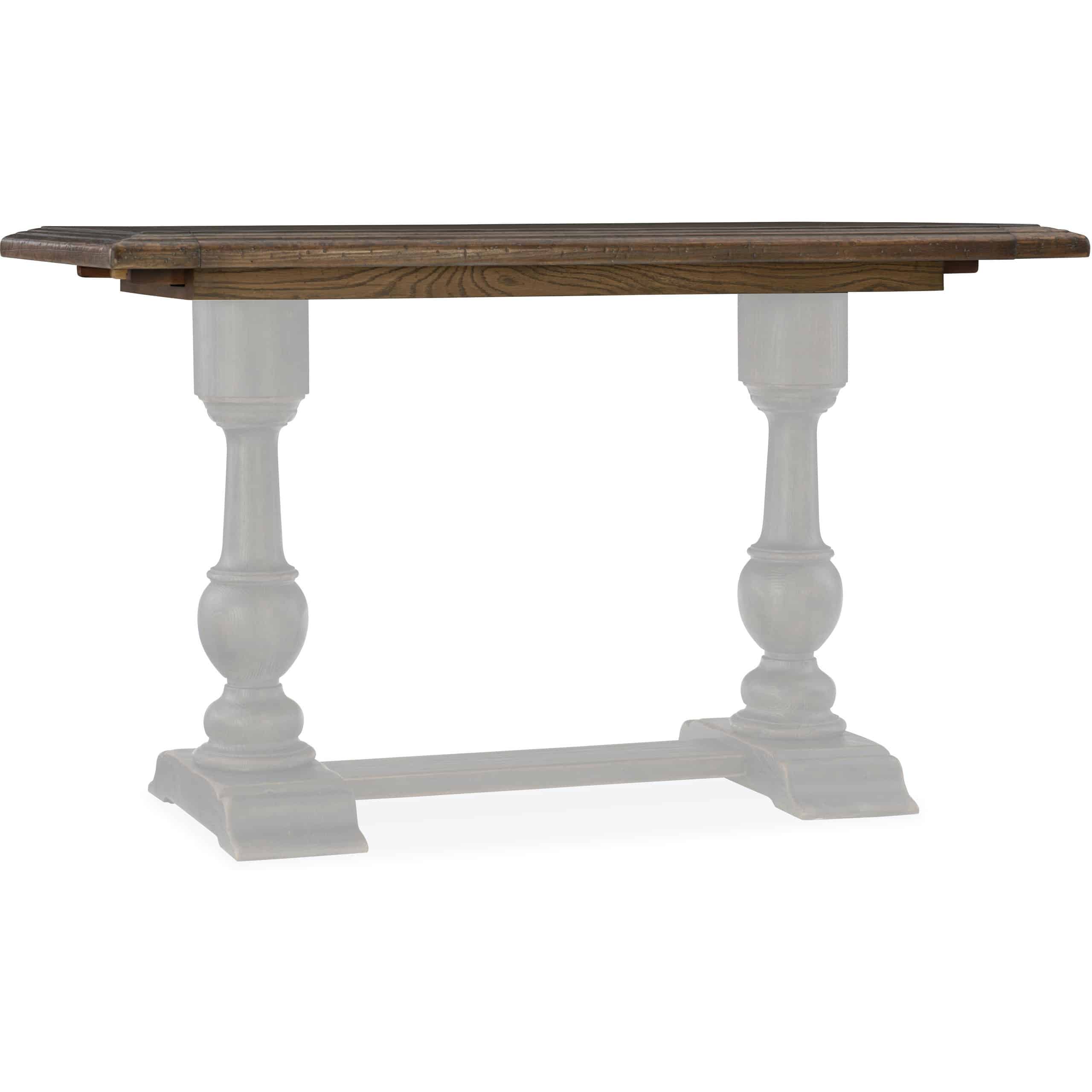 Features: Leaves are placed at the ends of the table between the middle and very ends. When you remove the leaf, the end of the table remains intact to keep the tapered edge.