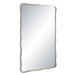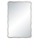Elevate any room with this irregularly shaped rectangular wall mirror. Measuring 24†x 36â€, and featuring 2-way hanging, it’s ideal for displaying horizontally or vertically above a fireplace, entry table or dining room credenza. An antique nickel frame provides style and durability while crystal-clear mirror glass delivers a distortion-free reflection unique to high-quality pieces.
