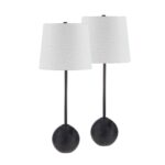 The Bangor 27″ Tall Matte Black Iron Table Lamp is the perfect addition to any modern home. Each lamp features a sleek, black iron base with clean lines that complement any contemporary decor. The sophisticated tapered linen shade diffuses the light for a warm, inviting glow, while the lamp’s tall 25-inch height makes it ideal for use on a bedside table or accent table. The set of 2 lamps are constructed with a sleek and modern design, and are compatible with standard E26 sockets with the ability to support bulbs up to 100W, offering a range of lighting options to personalize your space. The dimmer socket provides customizable lighting for any occasion.