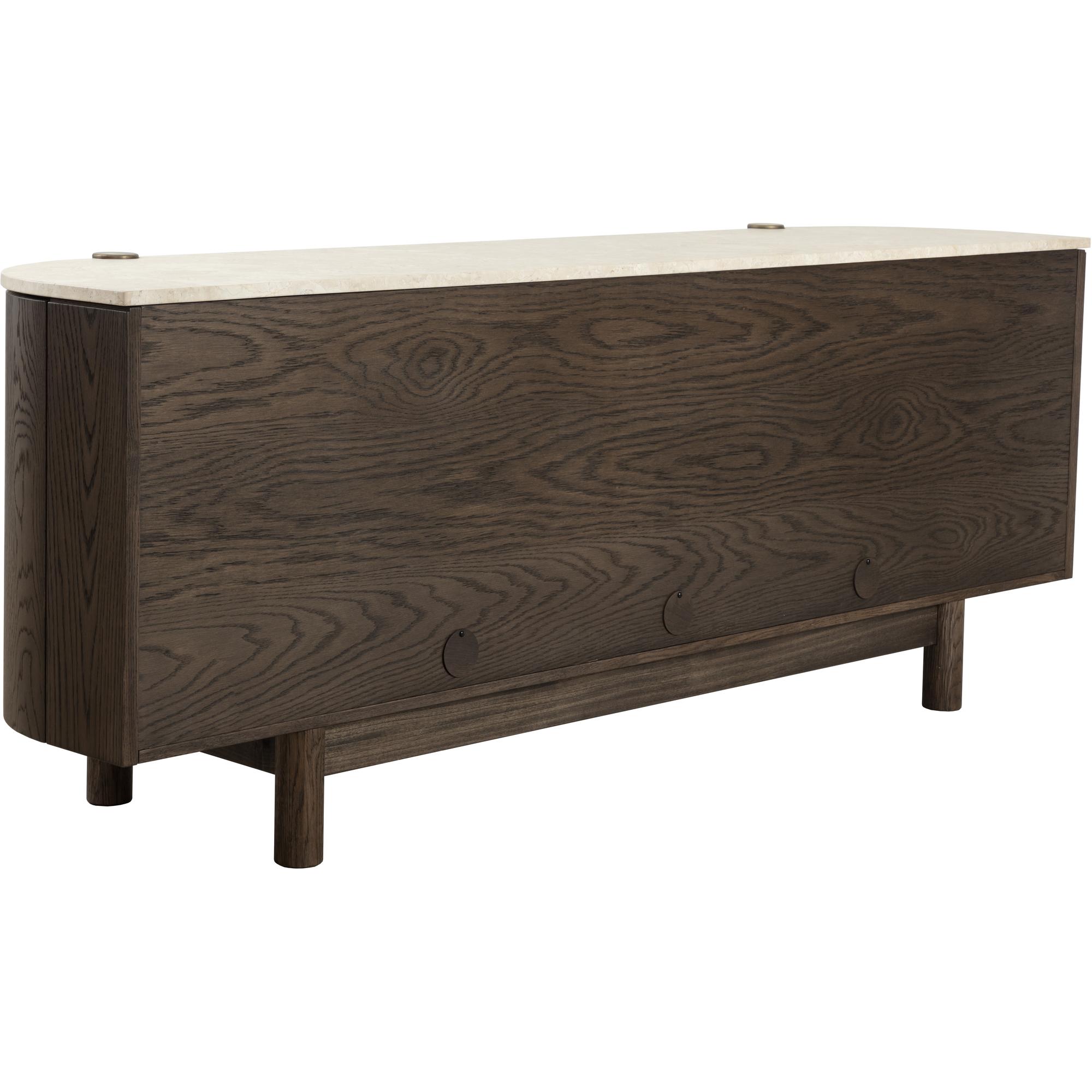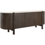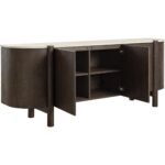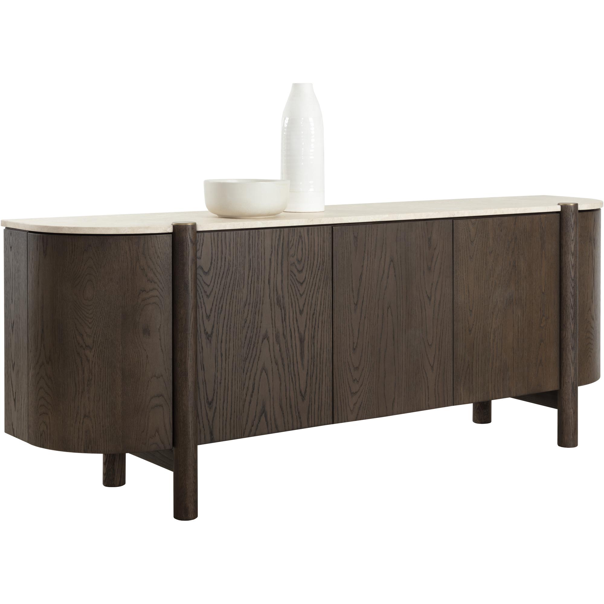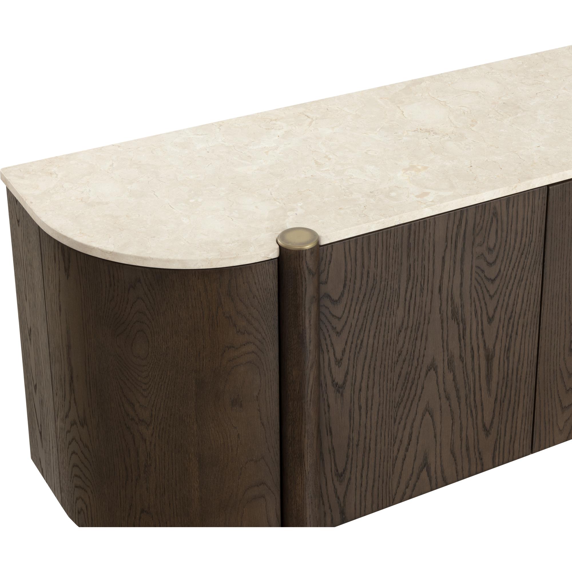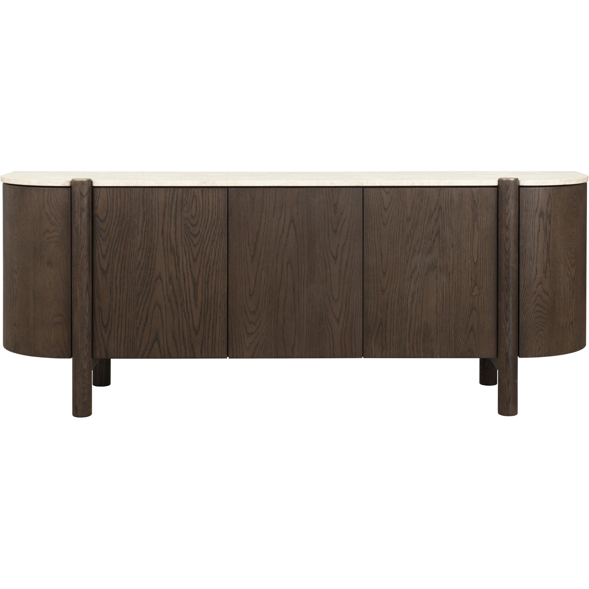The Banyan Sideboard is a standout with rounded curves and sculpted edges. Crafted to perfection with a cream marble top and a solid oak wood veneer base, this sideboard is a modern masterpiece.