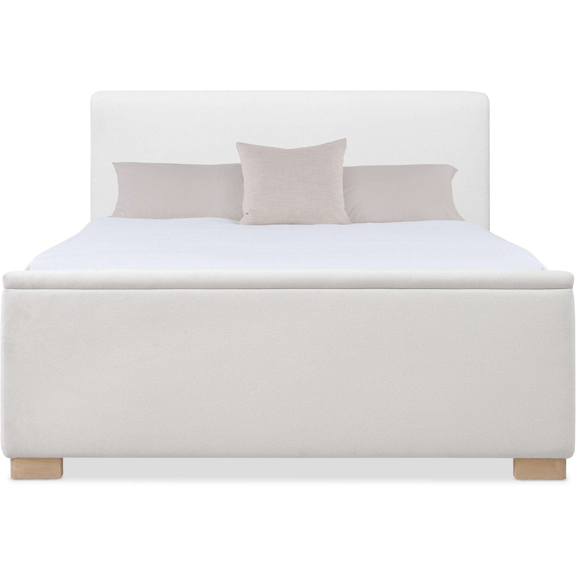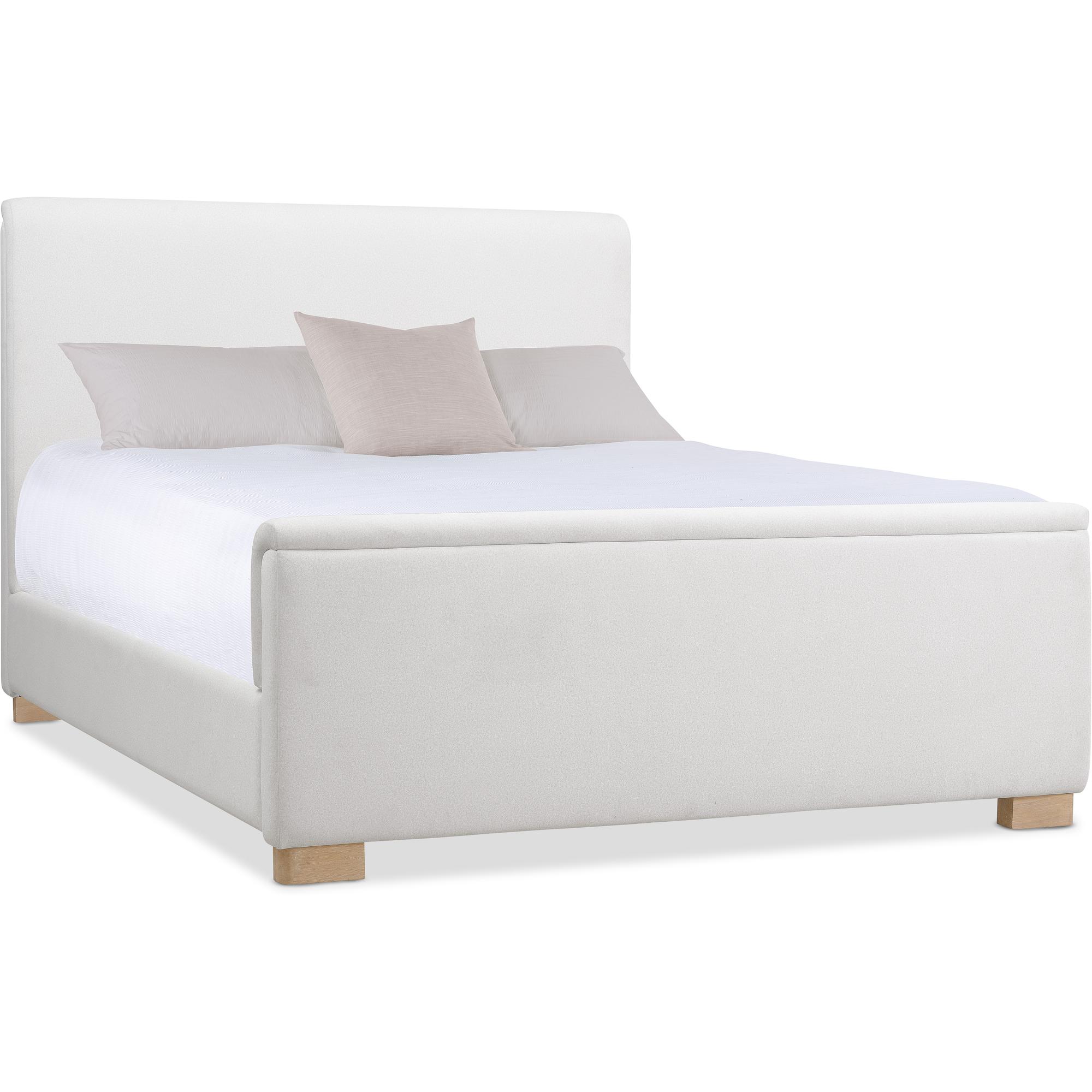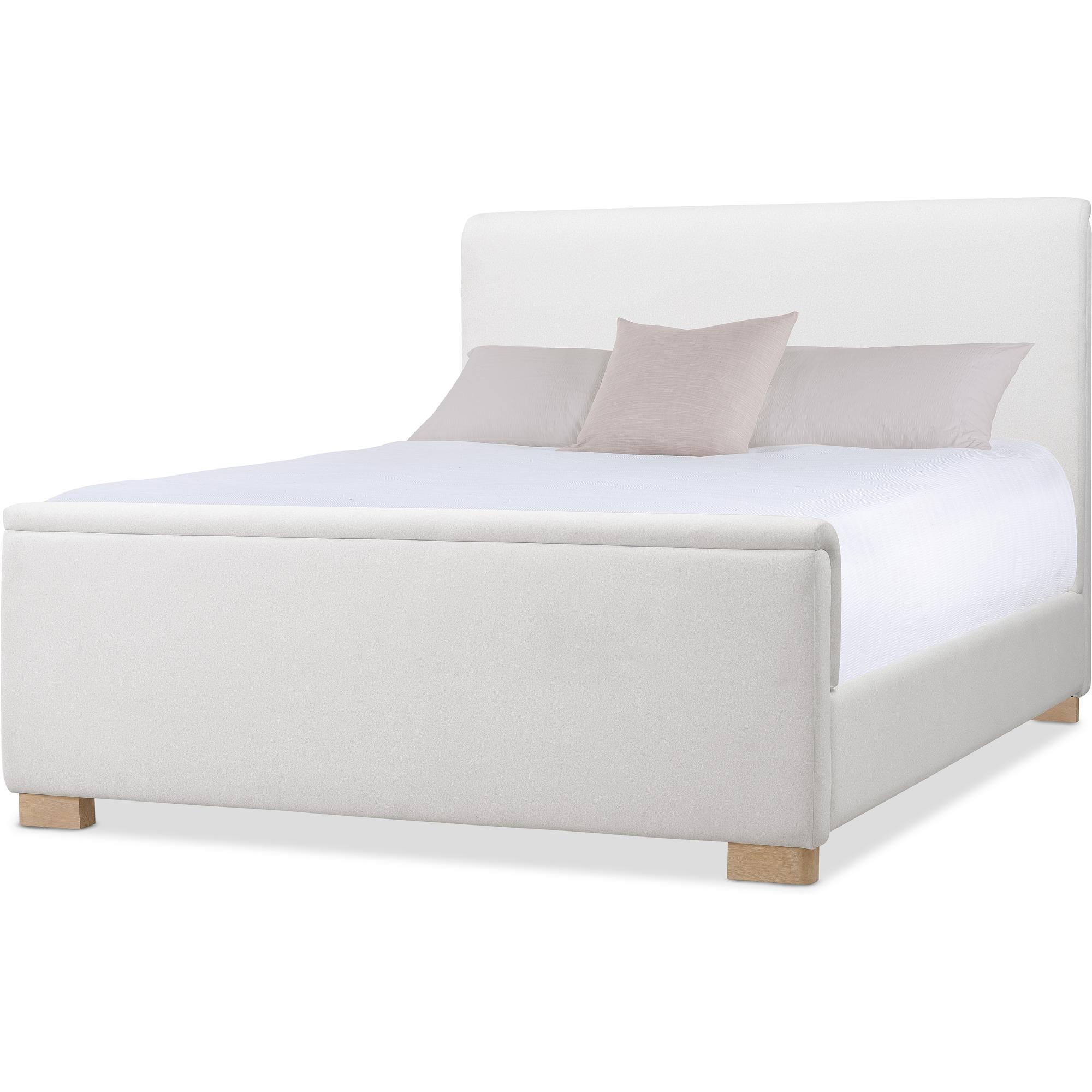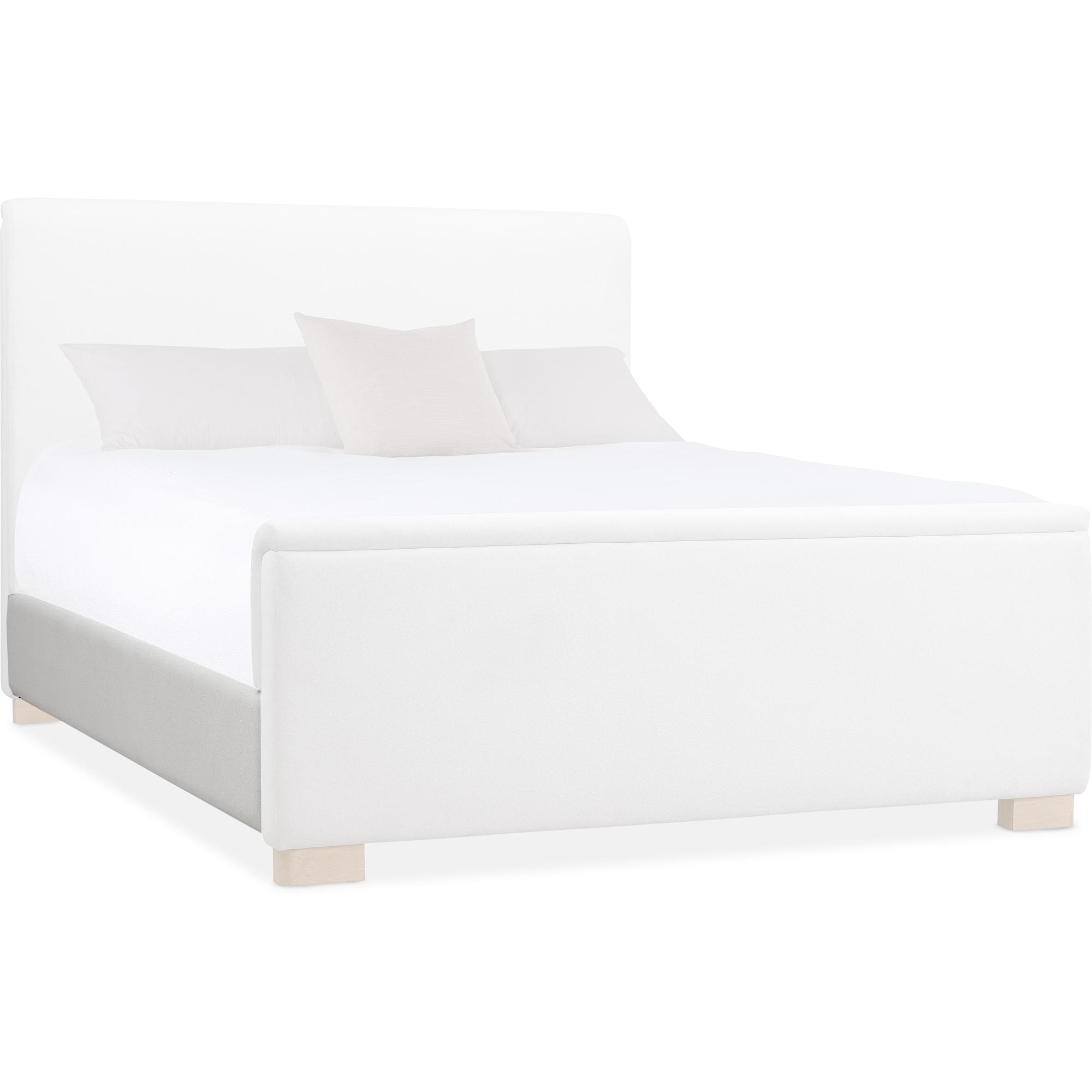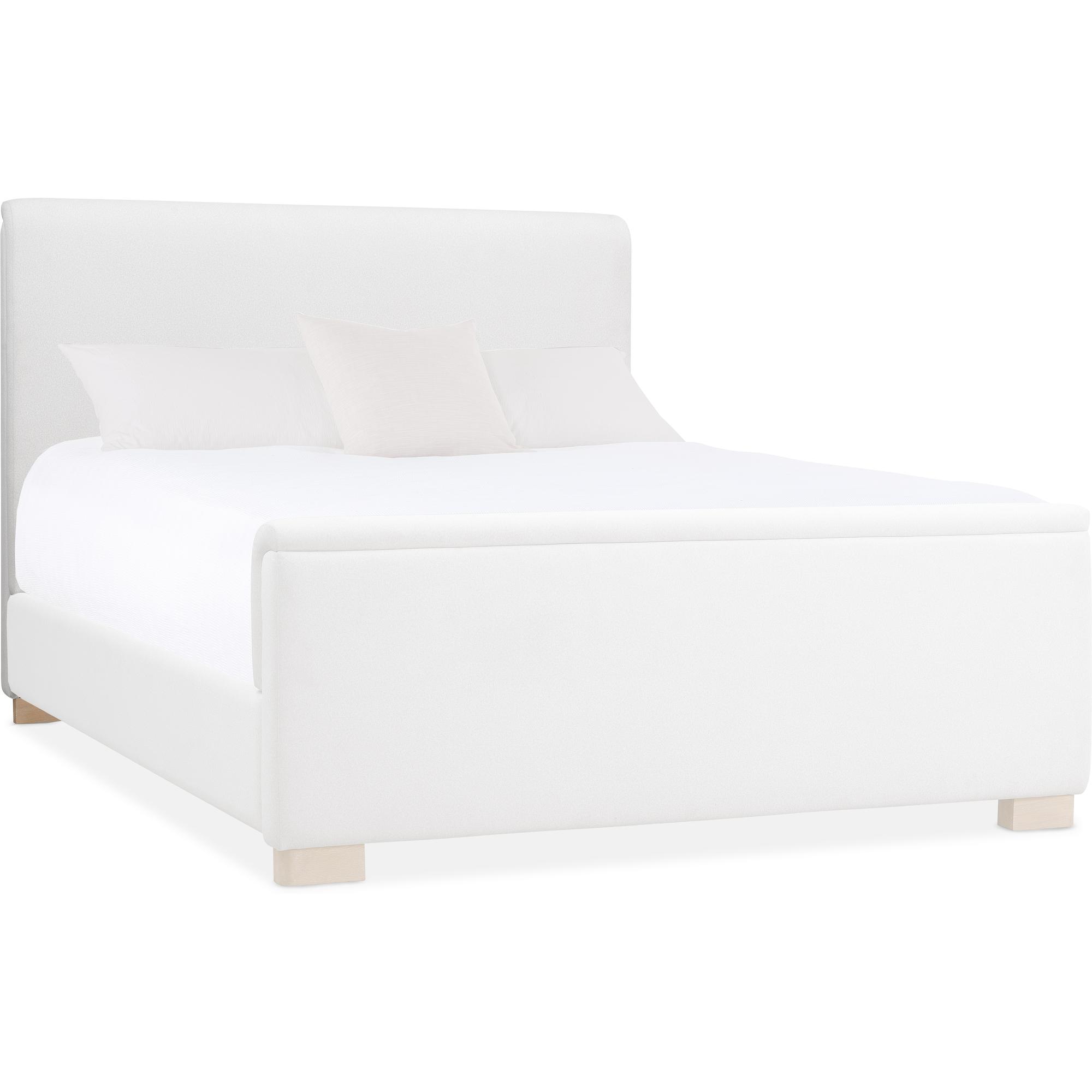 Features: California King size Includes headboard, footboard and rails Fully upholstered padded design with wood block feet Headboard can be used alone