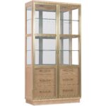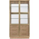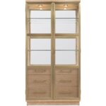 Finish: The multi-step Desert Oak finish features wire-brushing and cerusing. The stainless steel door frames and custom bar hardware feature a soft Brushed Brass finish.